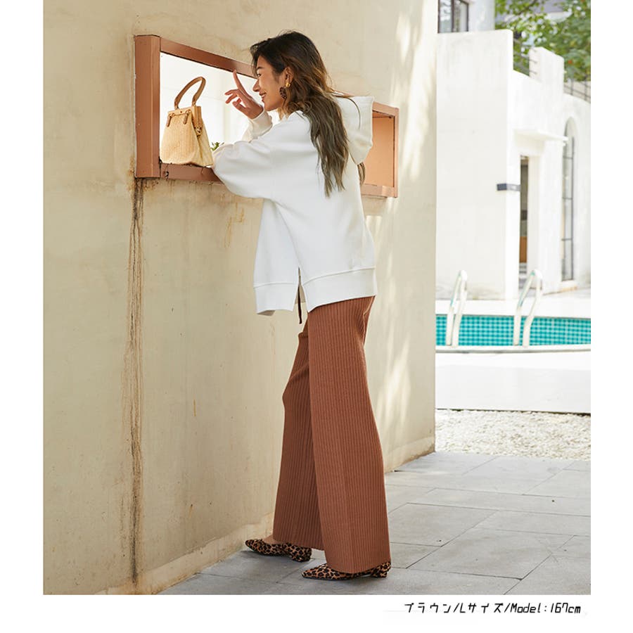 | 店長のコメント | 今季も押さえておきたいニットパンツ。ランダムリブの素材が程良く身体にフィットし、穿き心地◎裾のスリットは抜け感を演出します。 細めのリブが縦ラインを強調し、すっきり着痩せ効果も。 柔らかな生地は、肌触りも良く。伸縮性のあるリブ編みのニットを使用しているので穿き心地抜群@ しっかりとした重みがあるので、ニットパンツでも高見えを叶えてくれる一枚です。 ワンピースやBIGサイズのトップスと相性が良く、取り入れるだけで旬なスタイリングが完成しますよ。 |