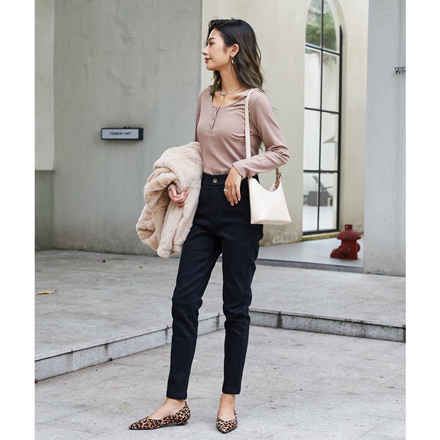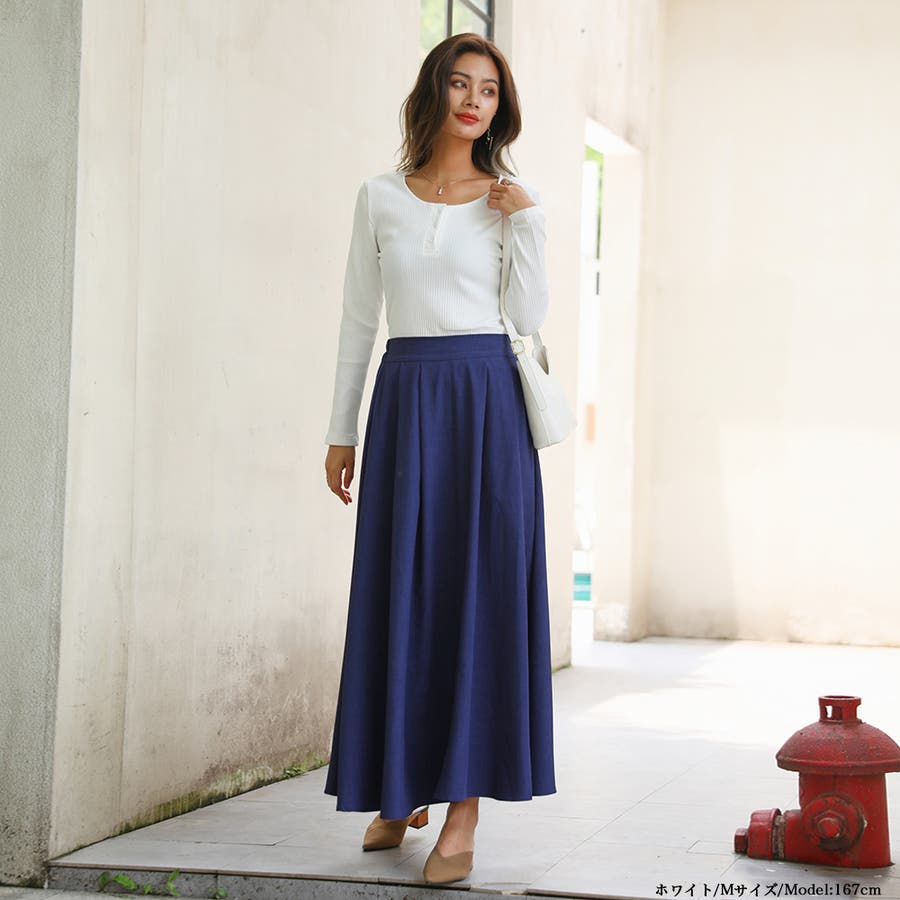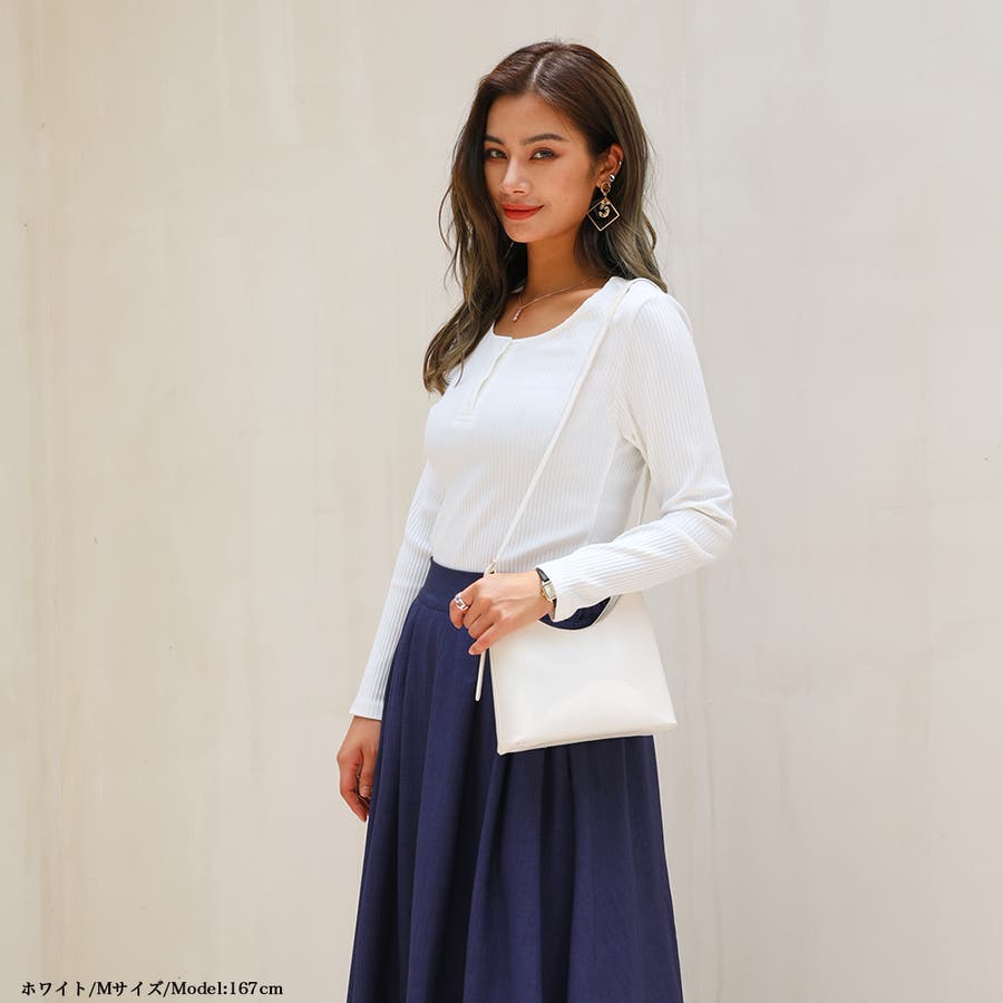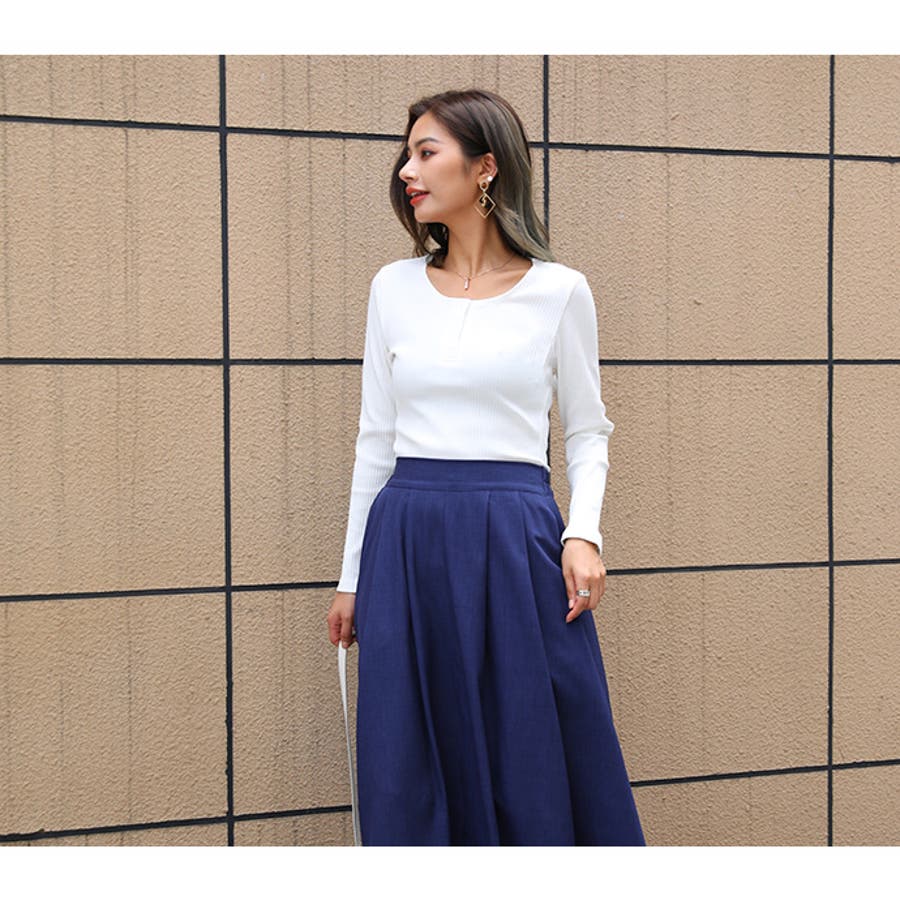 店長のコメント | 着回しに欠かせないシンプルなリブトップスが登場。ストレッチ感抜群の綿リブ素材は柔らかな肌触りで着心地も抜群の使え回せる長袖トップス。 綿混素材なので、肌馴染みも良く、さらりとした着心地に。 顔周りがスッキリ見えて、Uに開いたボタンネックがヘルシーな印象で、女性らしさ溢れるデザインです。 腕やお腹周りの程よいゆとりが大人の着こなしに相応しいです。体型を拾いすぎないよう、ややゆとりのあるサイジングにすることで窮屈感なく着用できるデザインに。 インナーを気にせず1枚で着用できるのも嬉しいポイント。 |