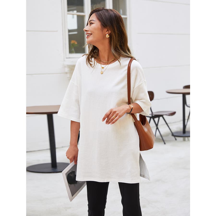 | 店長のコメント | ゆったりとしたサイドスリットが印象的なチュニックです。 シンプルなデザインながらの存在感んがある、カジュアルスタイルにピッタリな無地Tシャツ。 綿ならではの吸水性・通気性。肌さわりも柔らかで、サラッと着れる。 伸縮性に優れたコットン生地で肌触りも優しい、着心地GOODの1枚♪肌触りの良い天然素材で、豊富な色展開から選べるのも魅力的、何枚あっても貴重するアイテム。 ワイドなシルエットにサイドスリットが入り、レイヤードスタイルにも最適♪ 型崩れしにくい、楽に着用出来ます。いつ何時も、着ていたくなるTEE。 上品に可愛い品質へのこだわり、安心の程よい丈、仕事使いでも楽しめる。 これからの季節に嬉しいUVカット加工や抗菌防臭加工など機能性も抜群の一着です。 |
