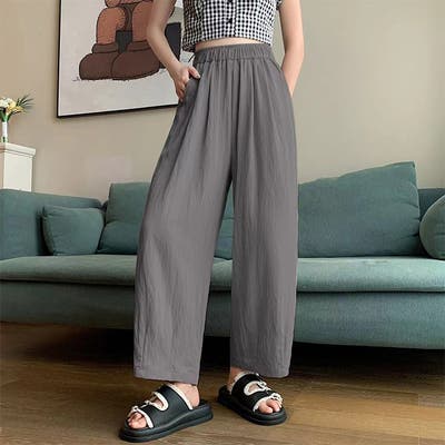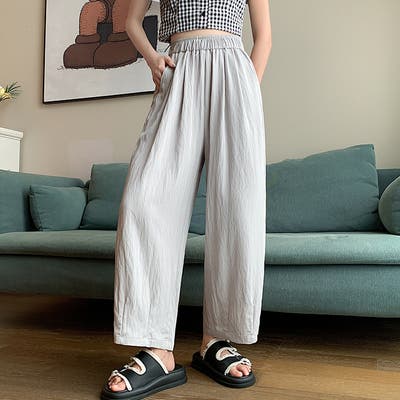 九分丈シワ加工 ワイド イージーパンツ