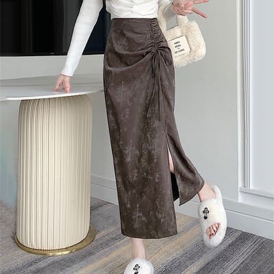秋 新作 スエード調マーメイドシルエットドロスト スリットタイトスカート