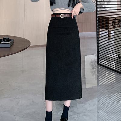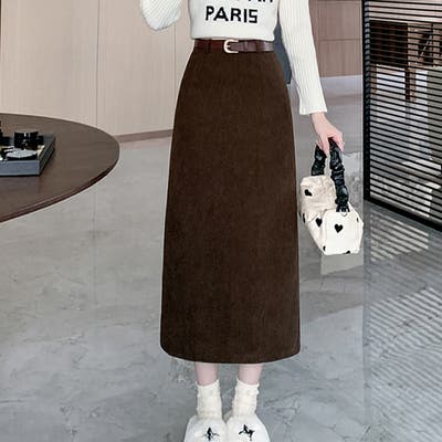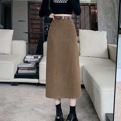秋 冬 新作 ベルトプレゼント コーデュロイ バックスリット ロングスカート