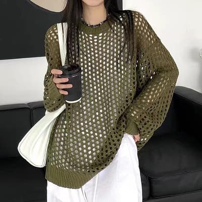 透かし編みゆったりプルオーバーニット 秋 新作