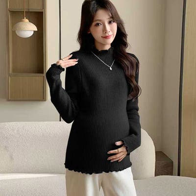 マタニティメローフリルリブニット ハイネックトップス