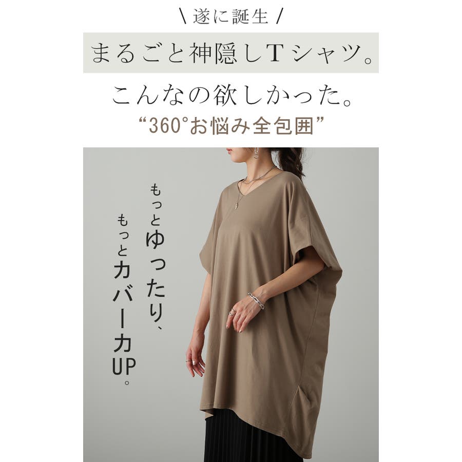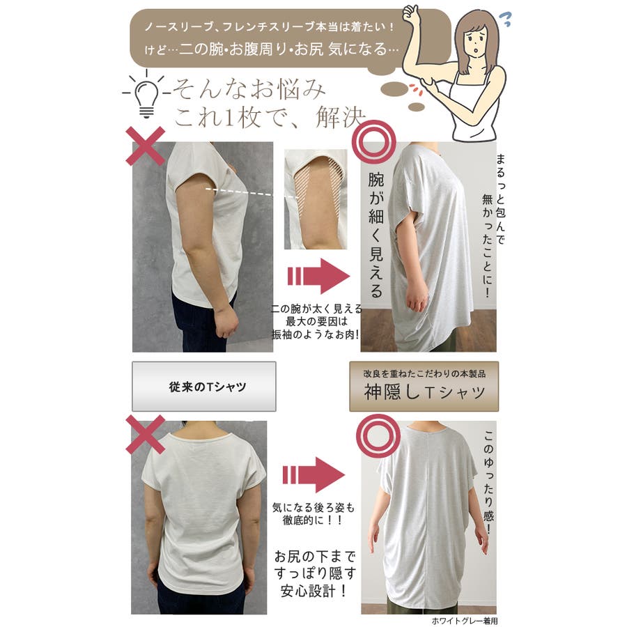 Tシャツ レディース トップス 二の腕カバー カットソー 半袖 チュニック 体