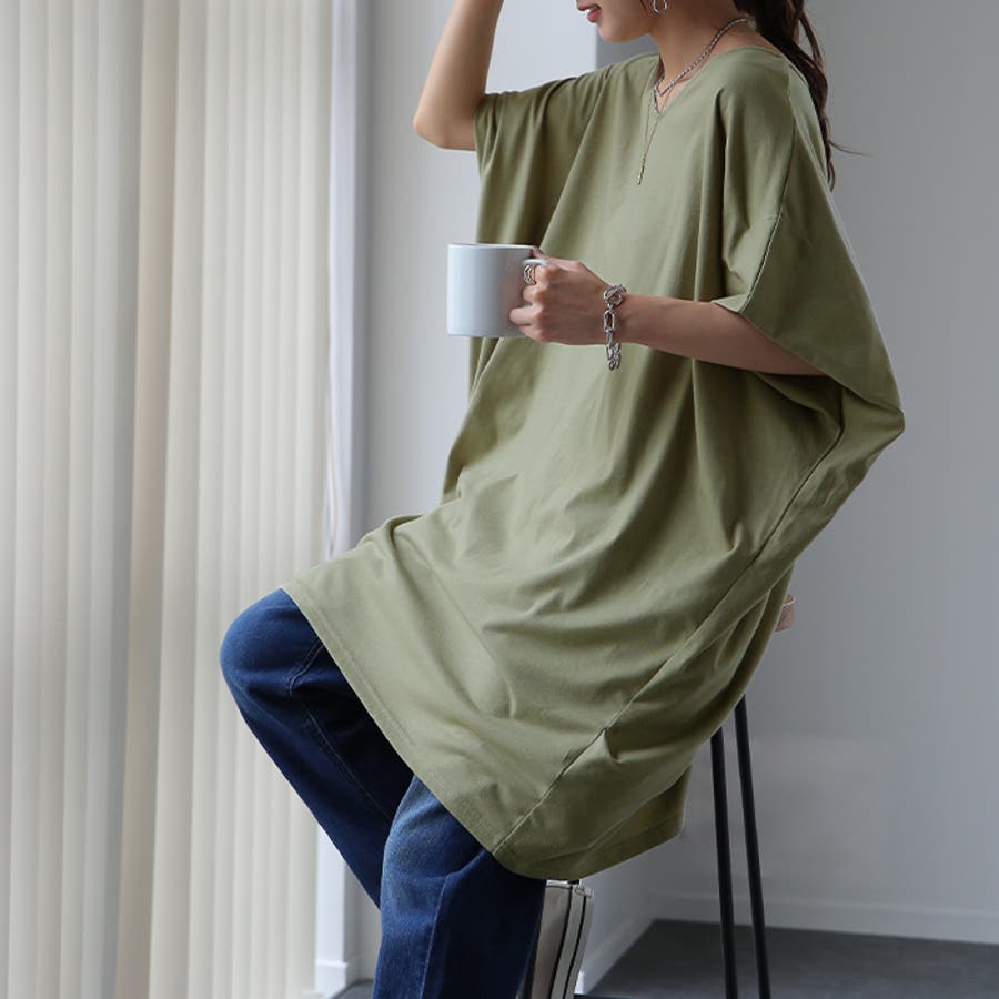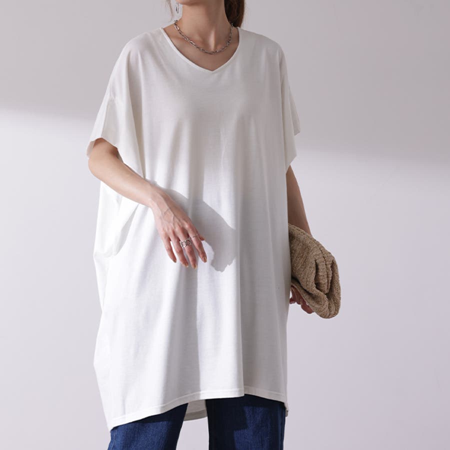 大活躍間違いなしのビッグシルエットVネックカットソーです。