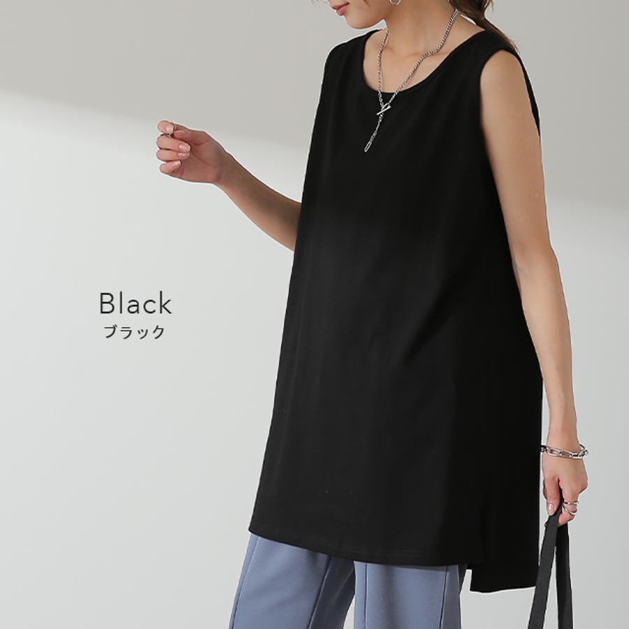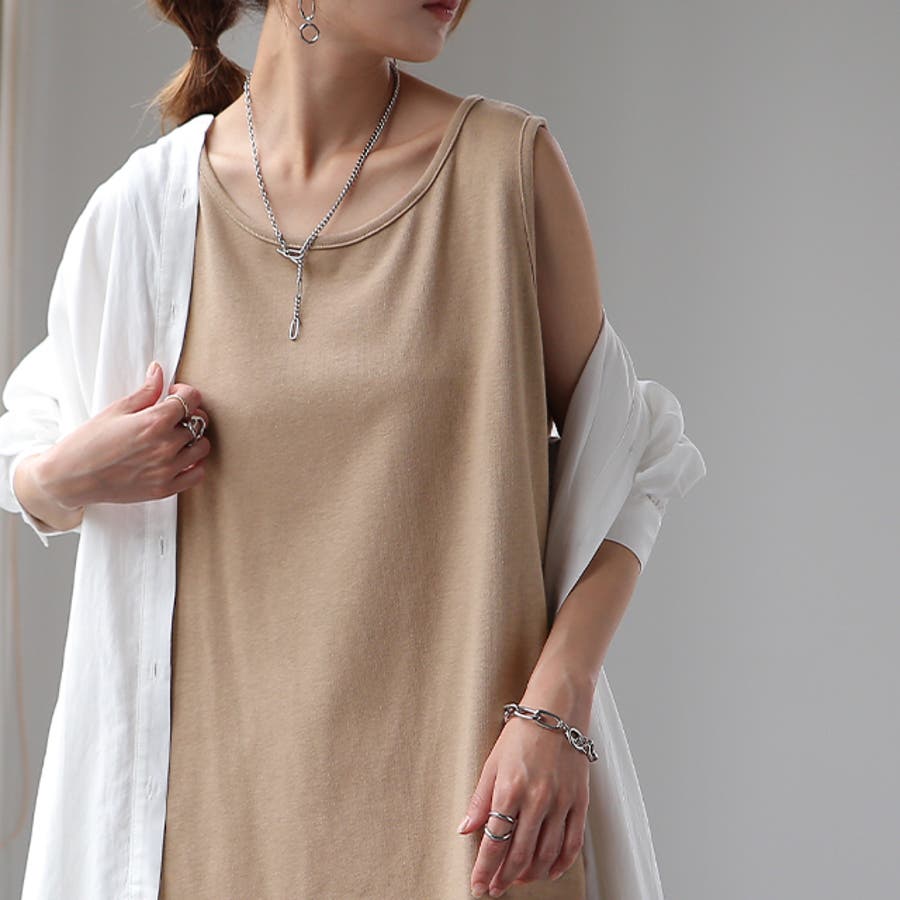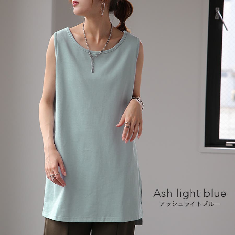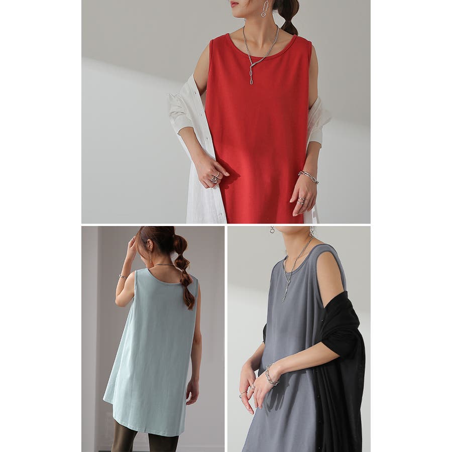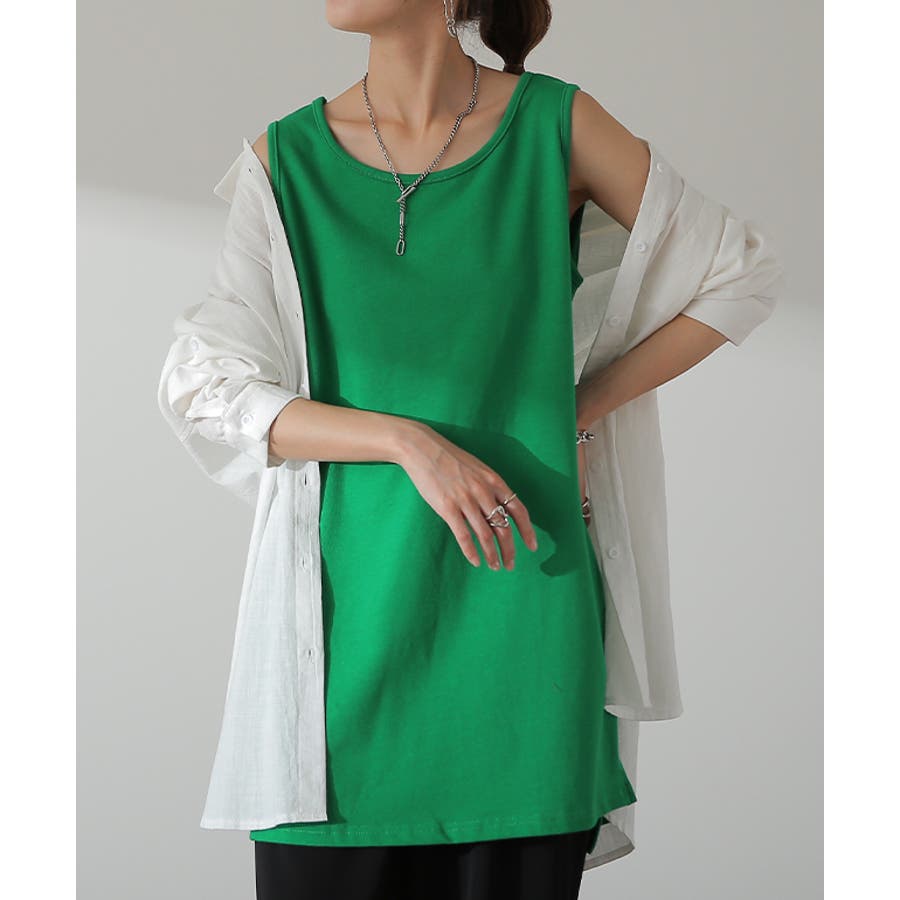 ほどよく厚みがあるチュニック丈の綿100%タンクトップです。