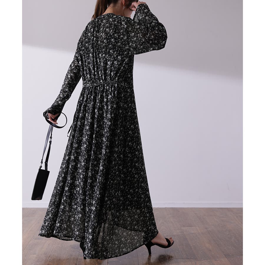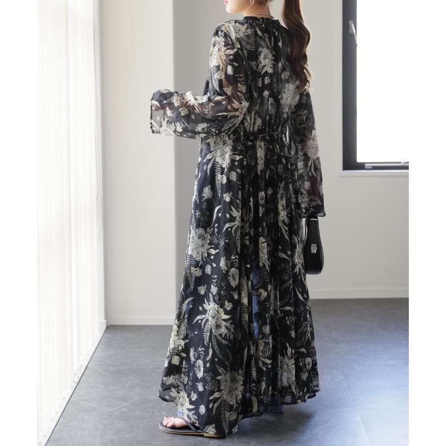 ワンピースとしてはもちろん前開きでシフォンガウンとしても使えてロングシーズン活躍します。