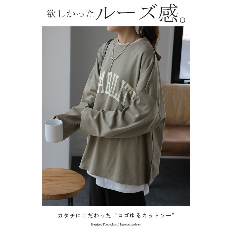 カットソー レディース トップス ロゴT 長袖 ロンT ロング Tシャツ チュ