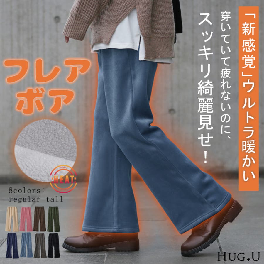 パンツ レディース 裏起毛 暖か フレアパンツ ロング ボア ボトムス 厚手