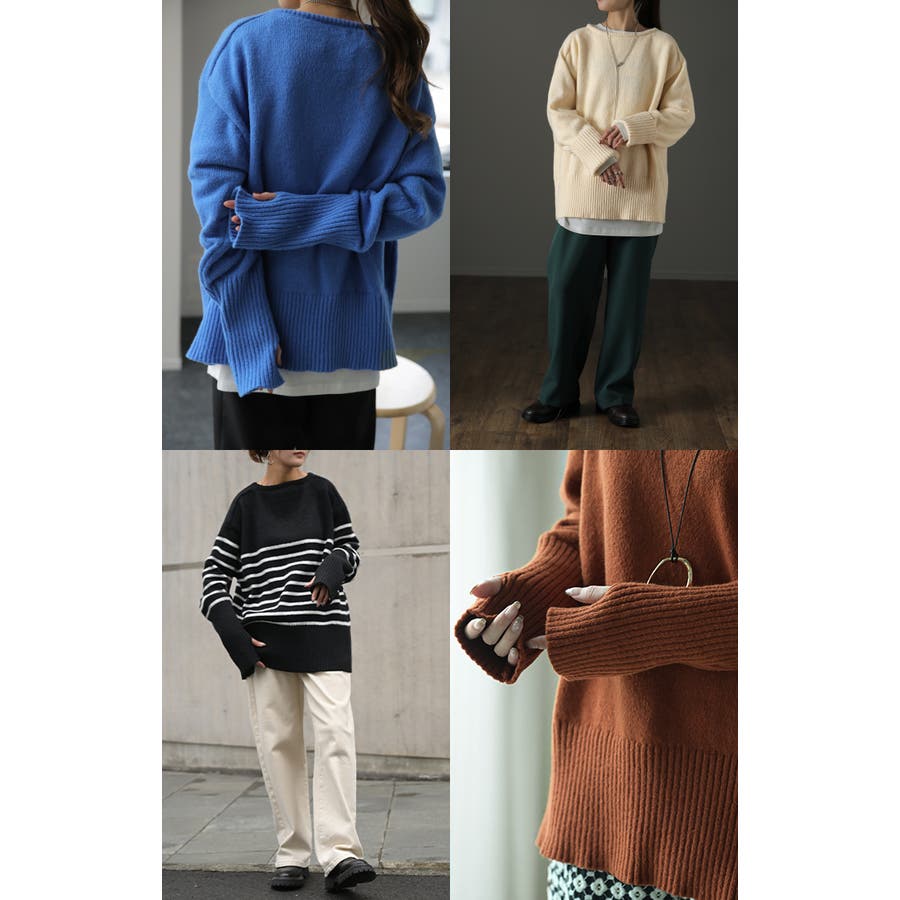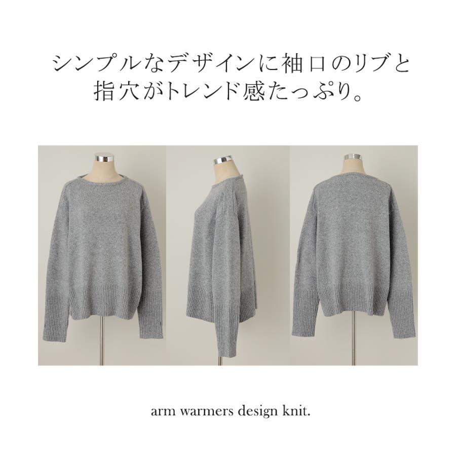 ニット レディース トップス セーター アームウォーマー 指穴 ボートネック