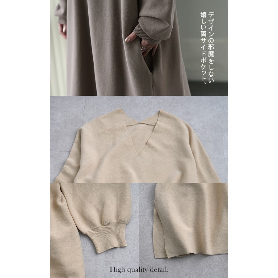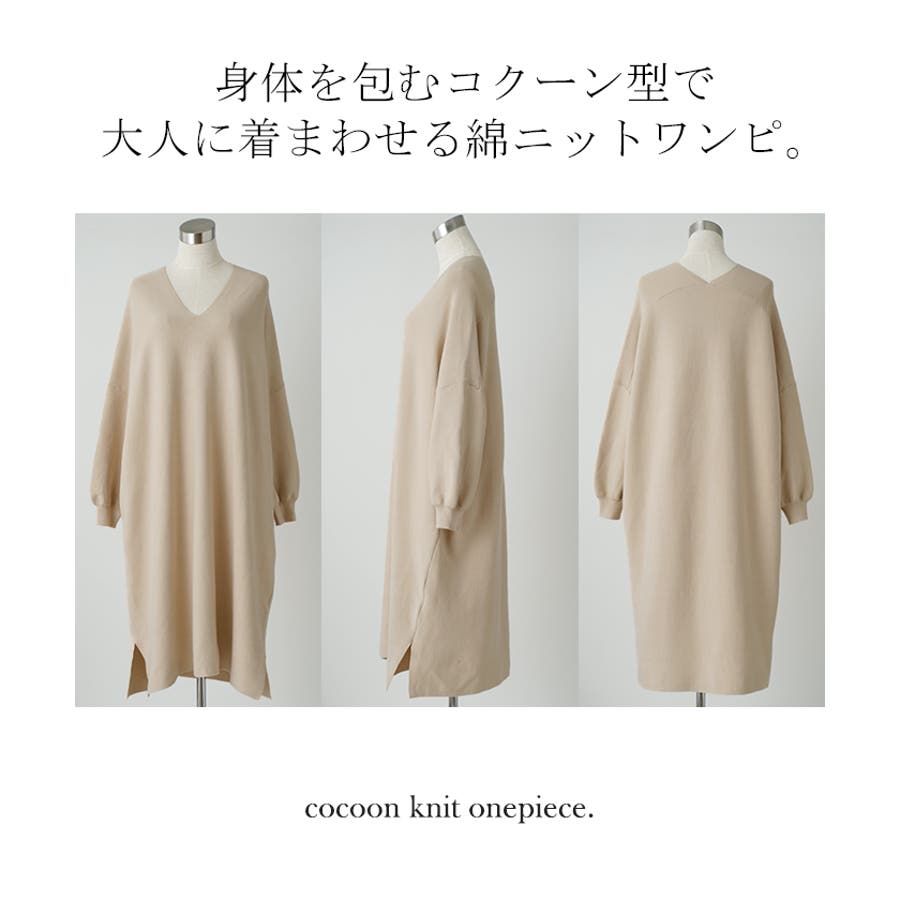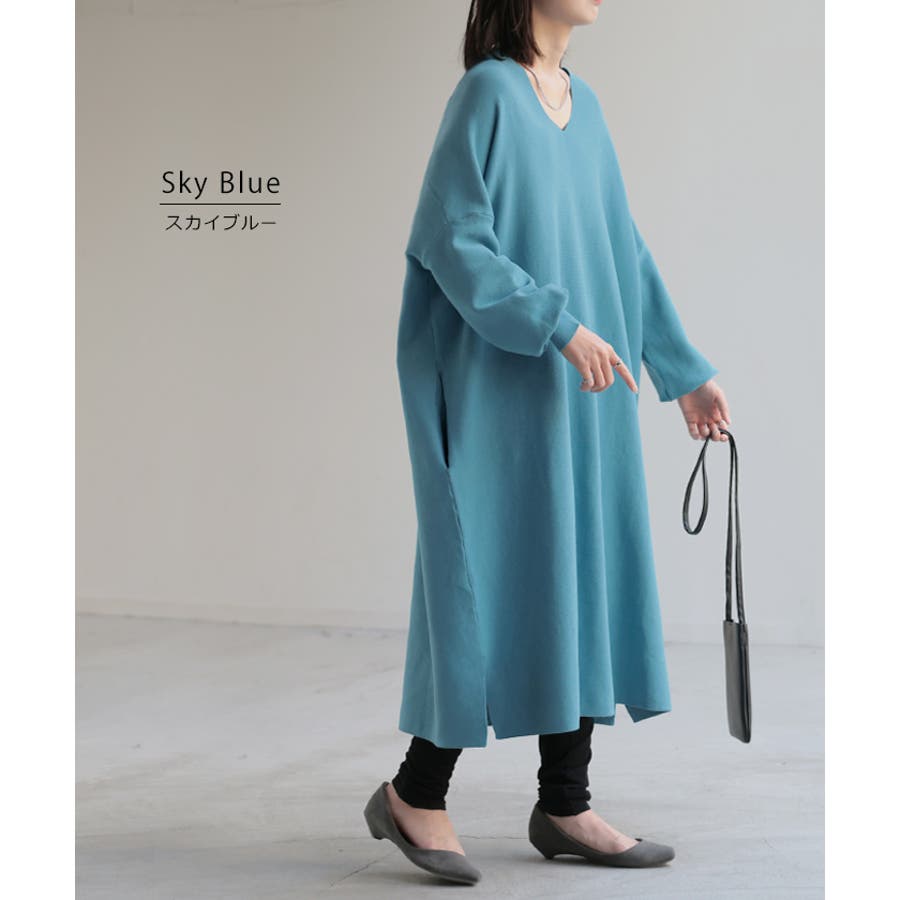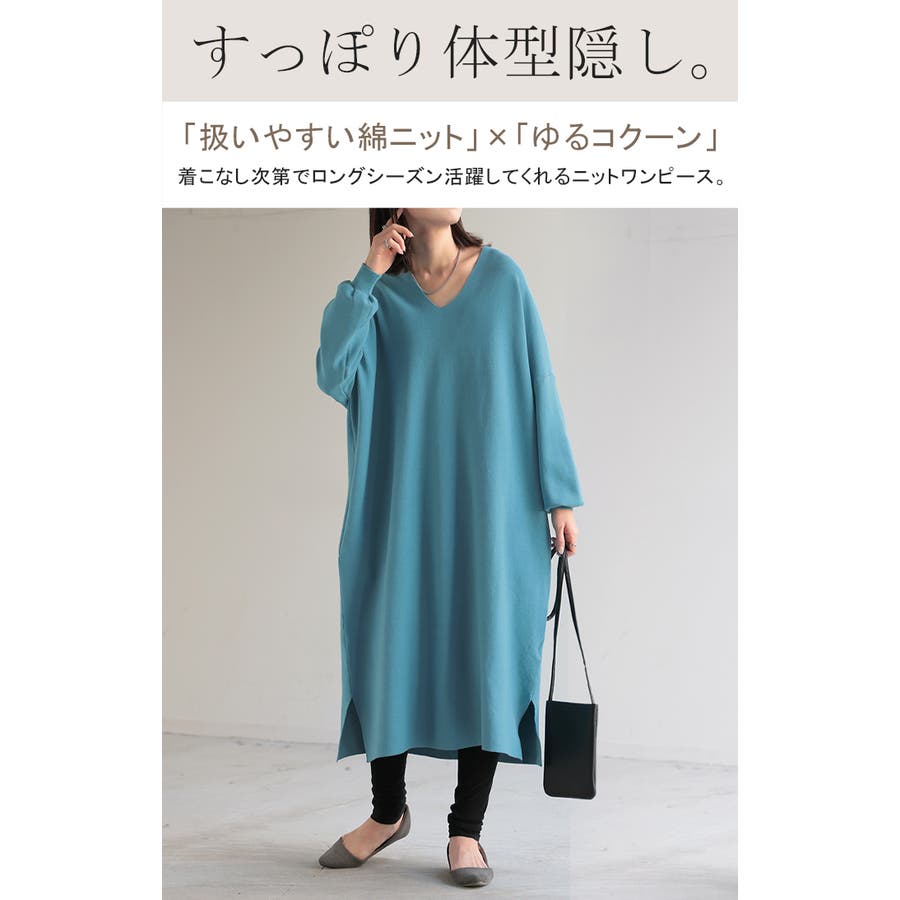 ワンピース レディース ニット 綿 100% ロング Vネック 体型カバー コ
