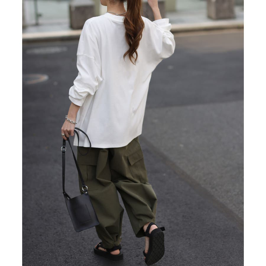 ゆったりとしたオーバーサイズにドロップショルダーで華奢見えする1枚。