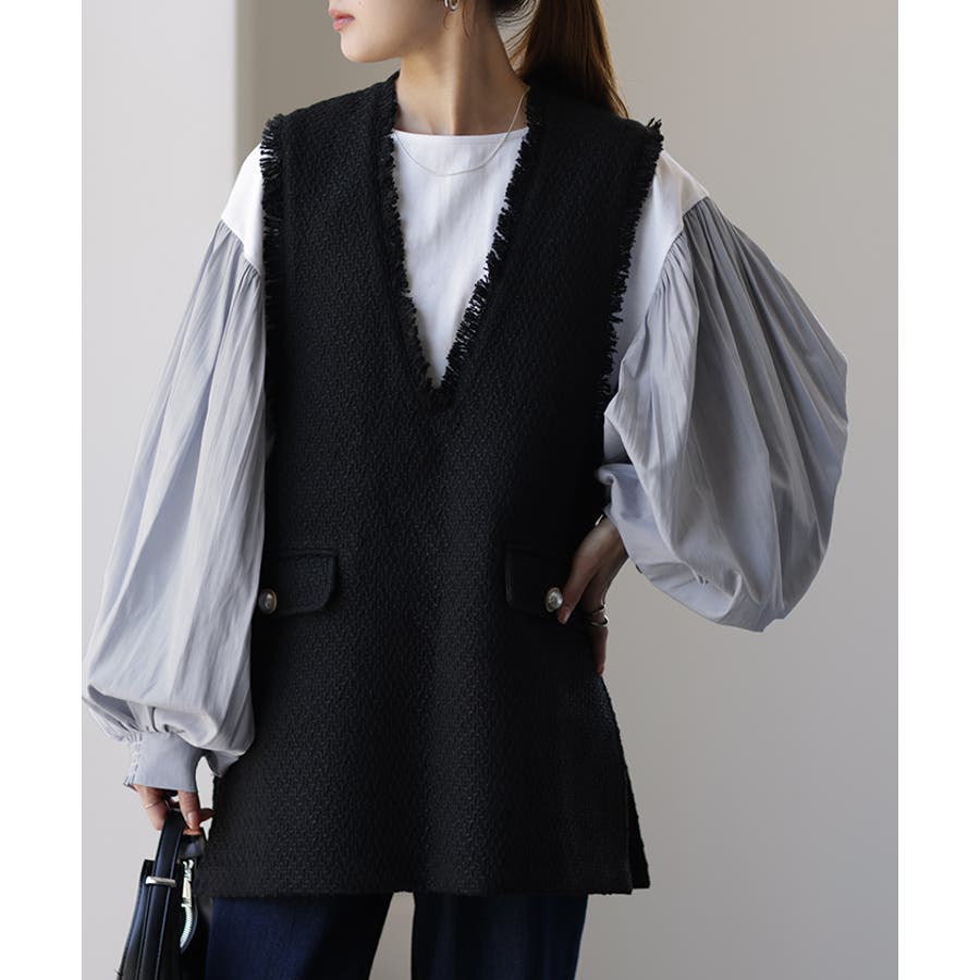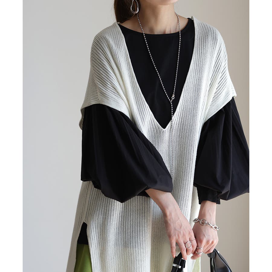 1枚はもちろん、重ね着にもOK。幅広く使える便利なトップスです。