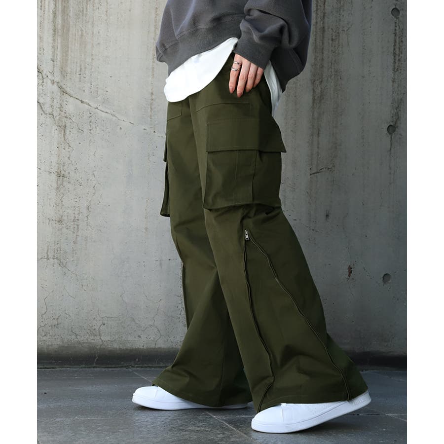 ジップの開閉で見せ方に変化が出せる優秀カーゴパンツです。