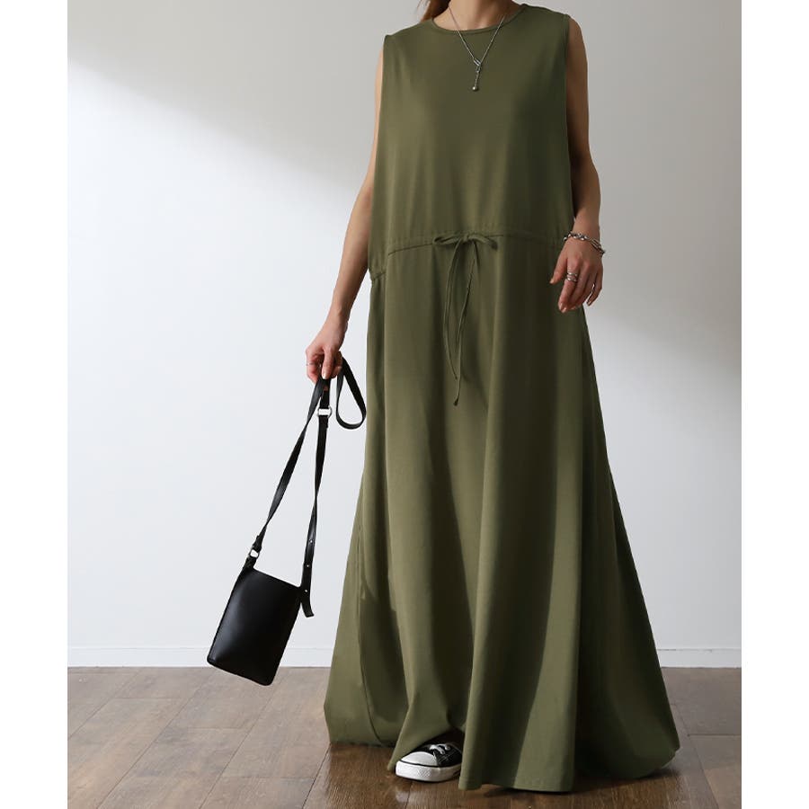 一枚で上品キレイにまとまるノースリーブワンピースです。