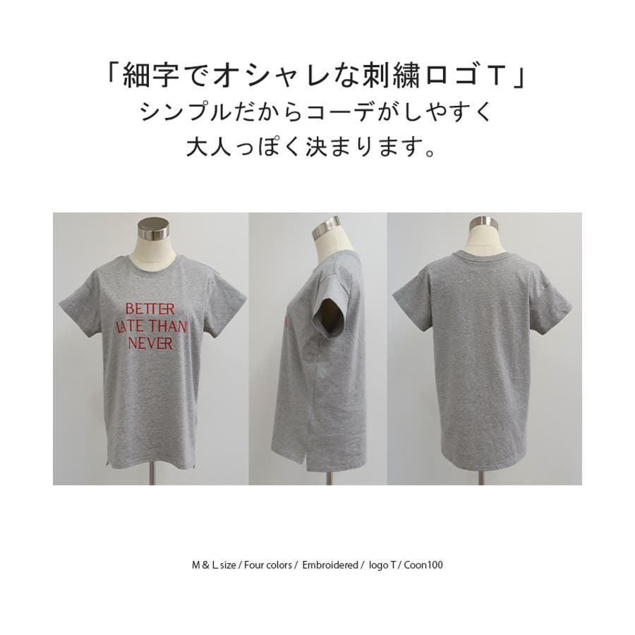 ロゴT レディース Tシャツ トップス 半袖 カットソー 刺繍 ロゴ フレンチ