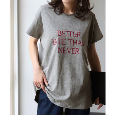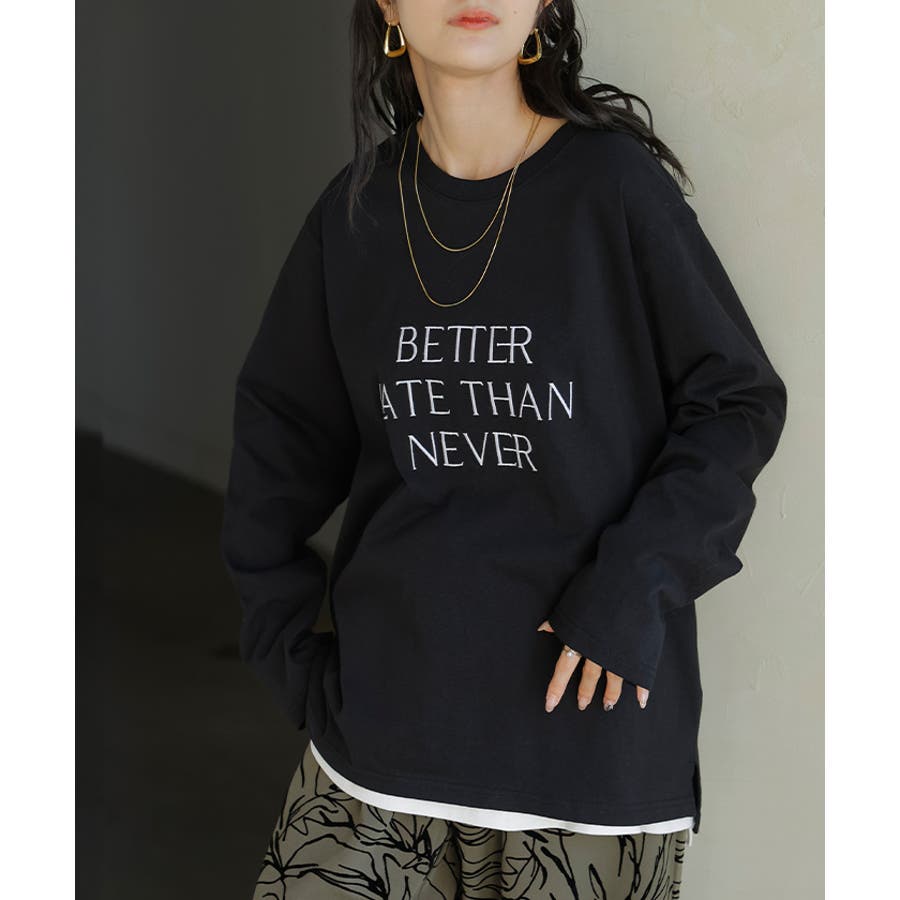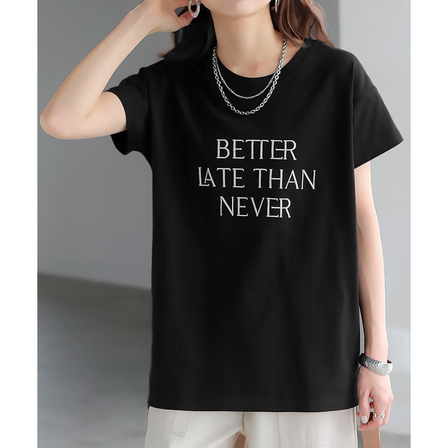 胸のメッセージ刺繍がコーディネートのアクセントになるカットソーです。