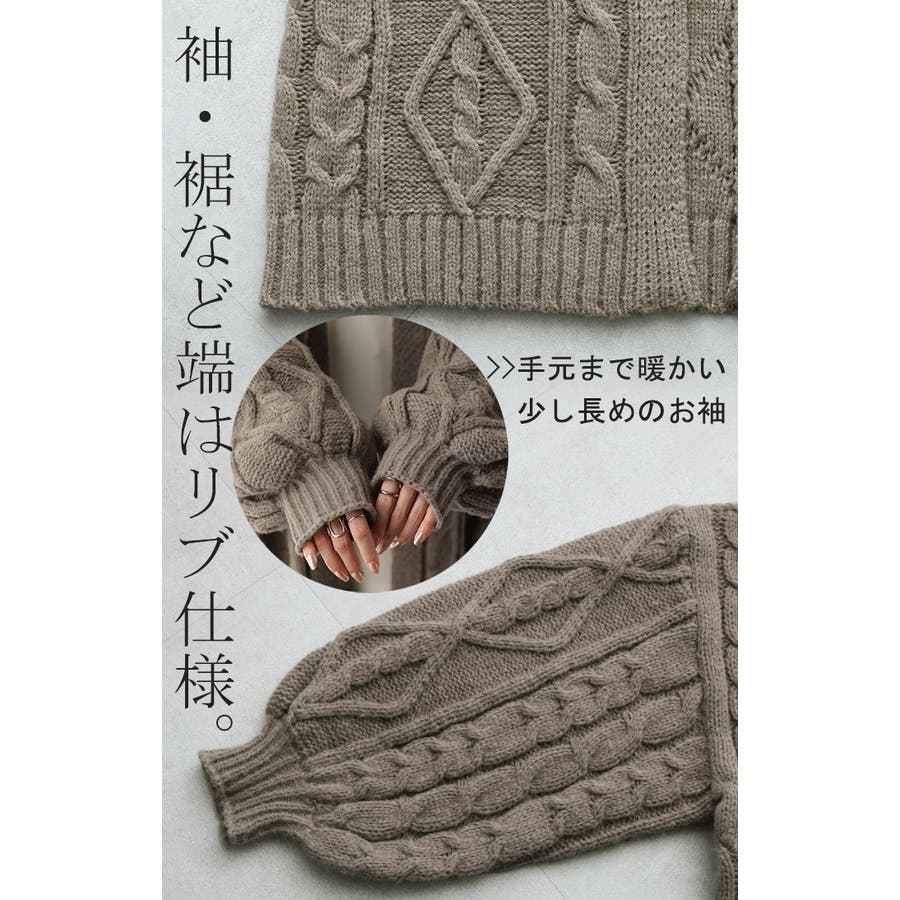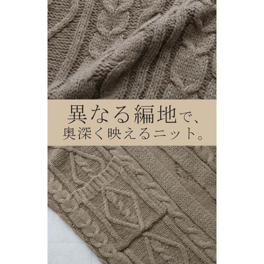 ケーブル編みが上品な表情に仕上げてる大人っぽい1着です。