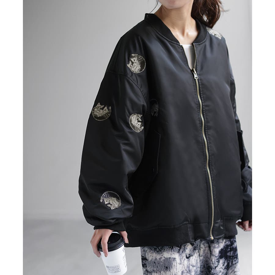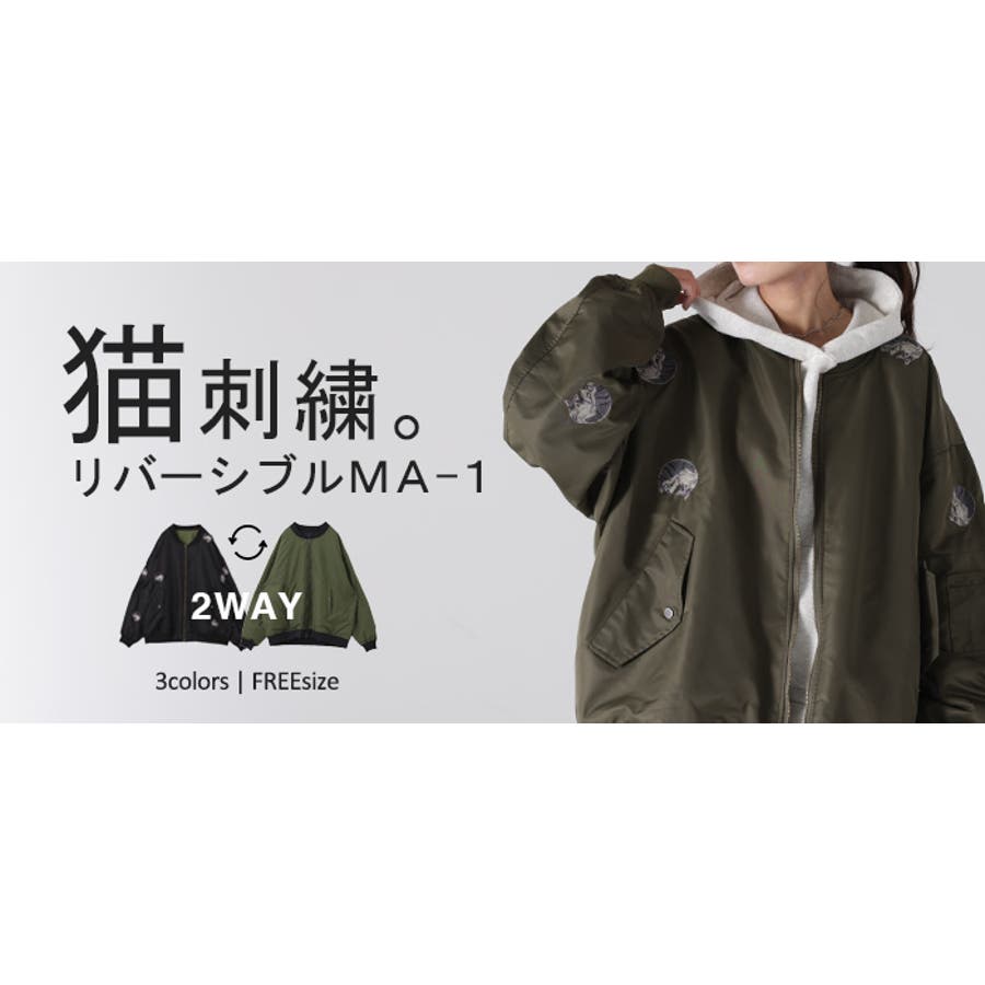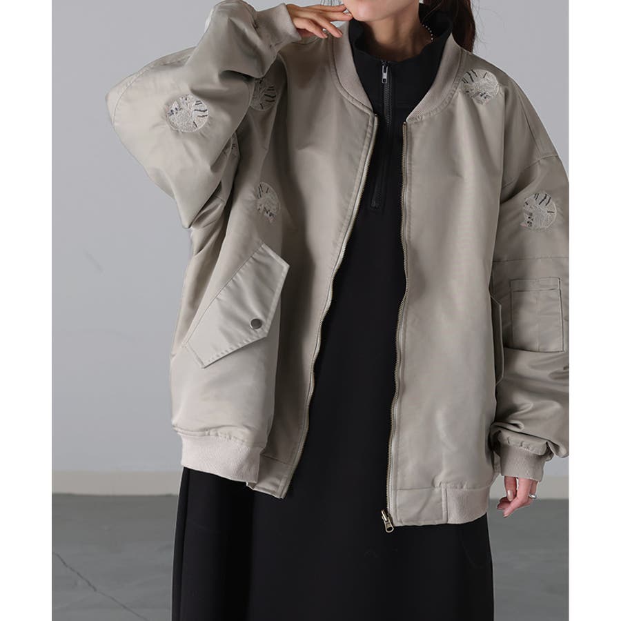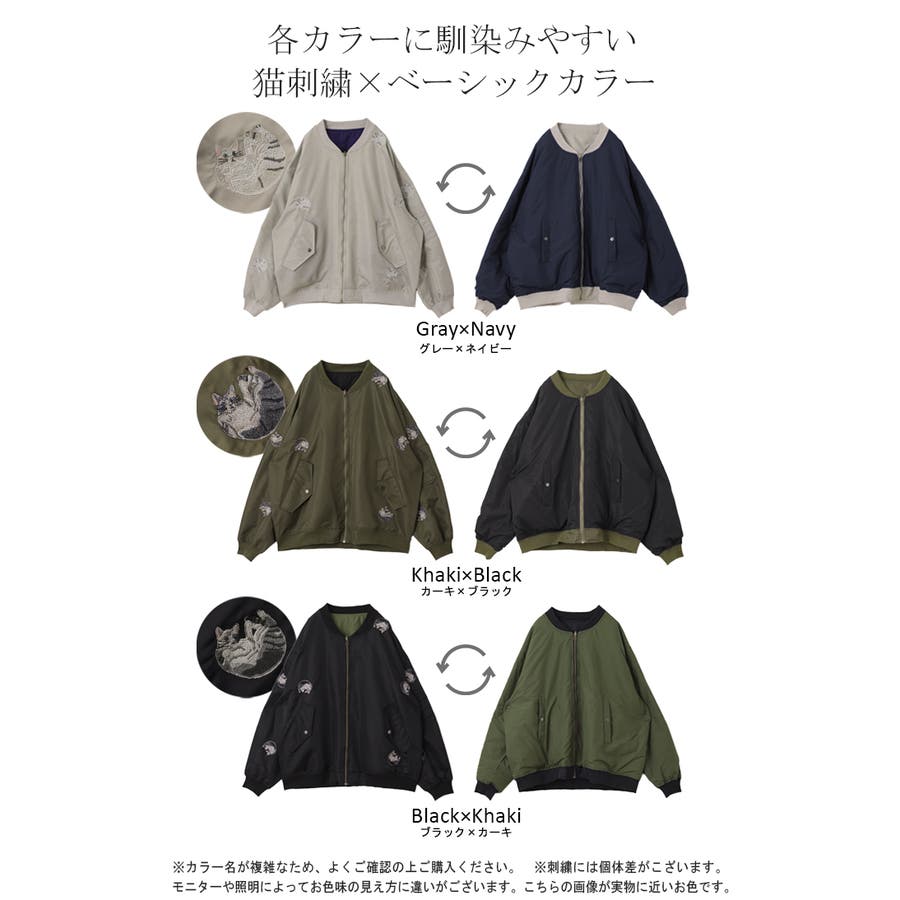 さりげなく可愛いネコ刺繍を施したMA-1タイプジャケットです。