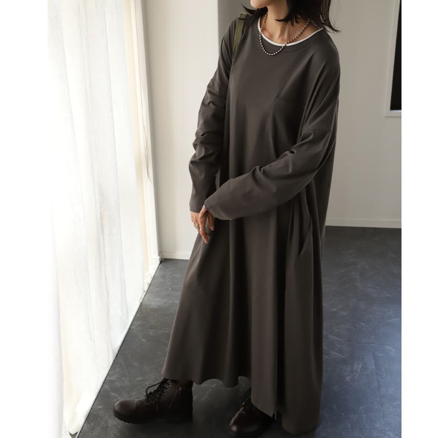 体型も拾わず1枚でもレイヤードコーデでも楽しめるコーデ幅が広がるワンピースです。