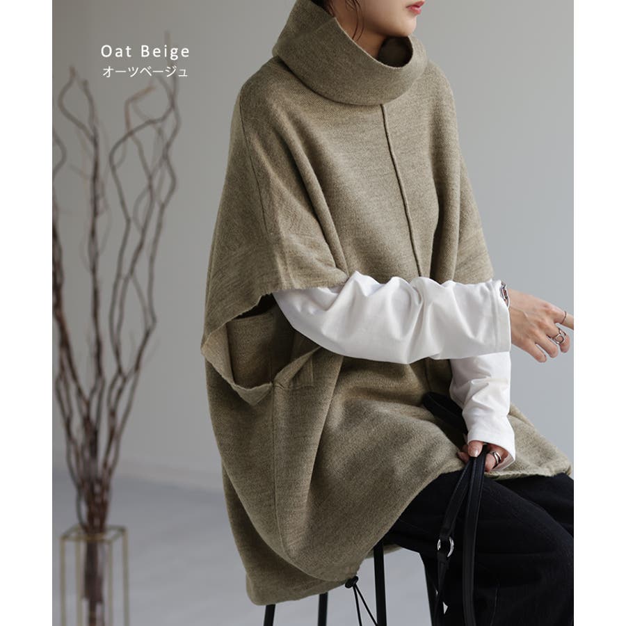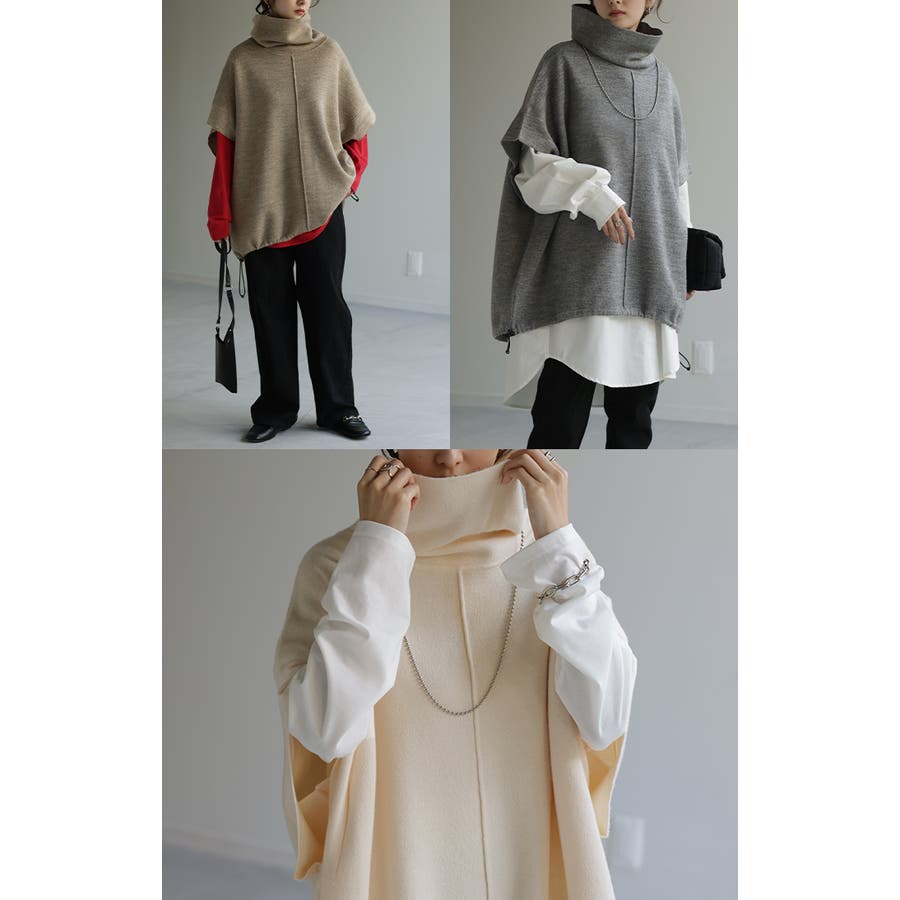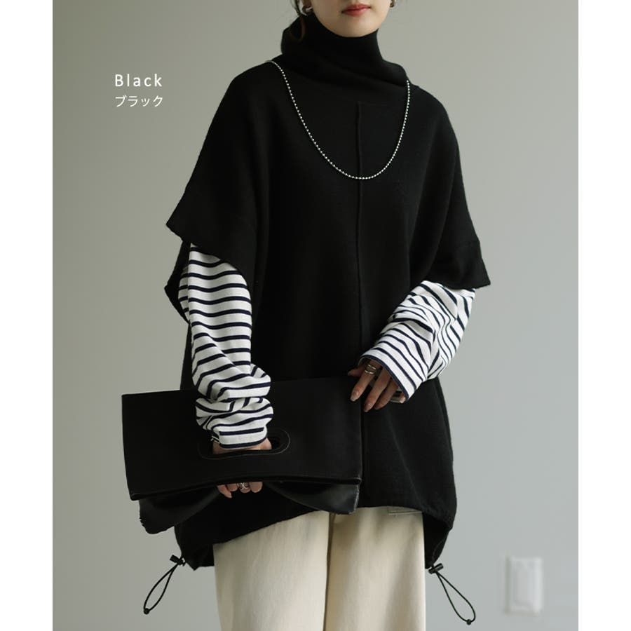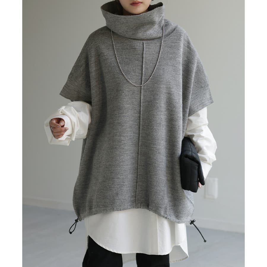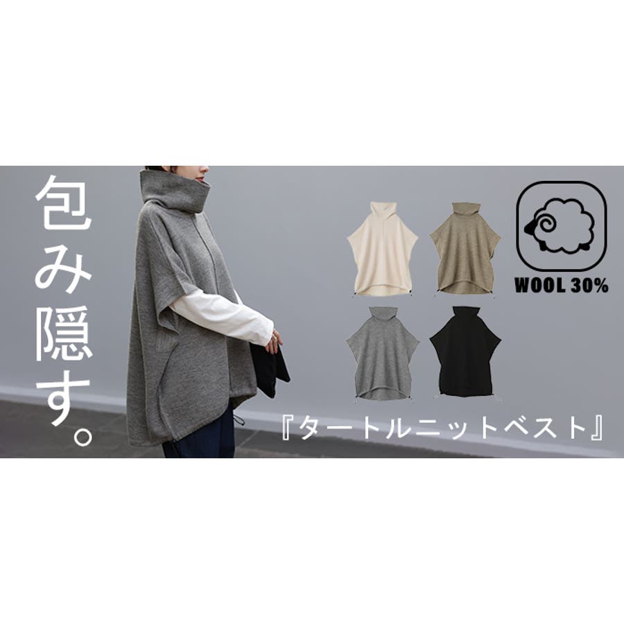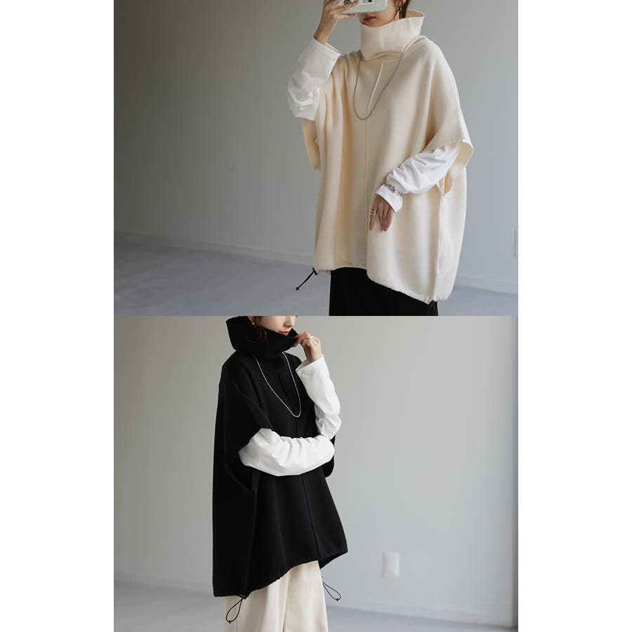 ボリューム感が可愛いゆとりのある着心地のタートルネックニットベストです。