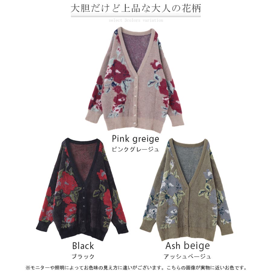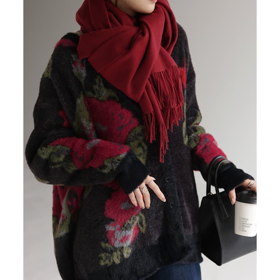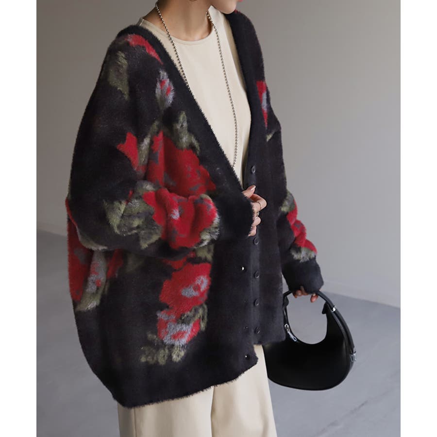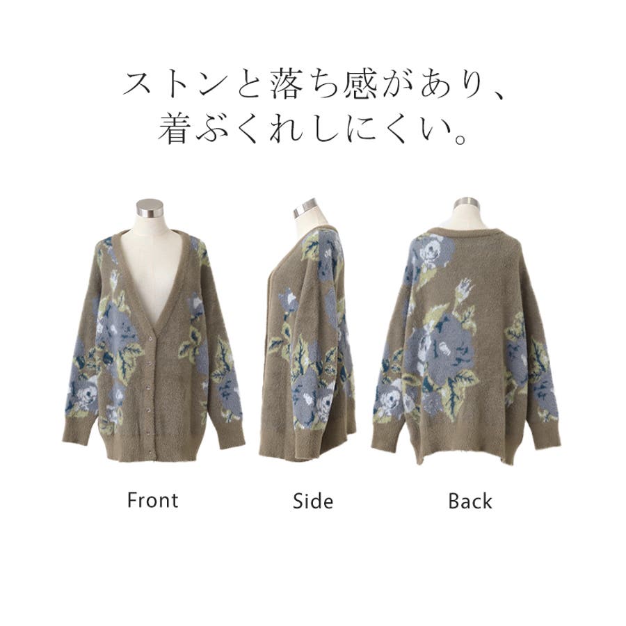 コーデを華やかに彩るシャギー花柄ニットカーディガンです。