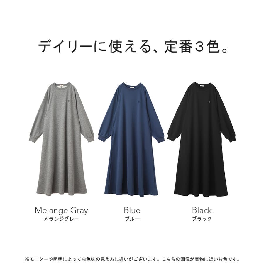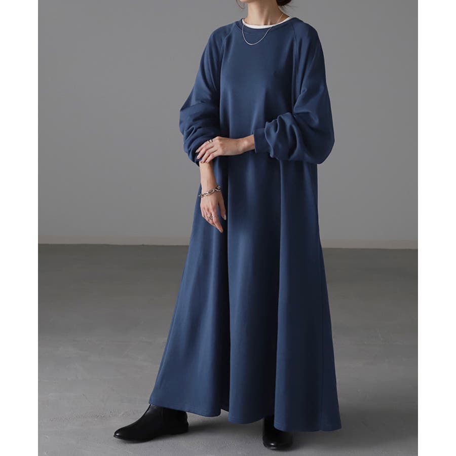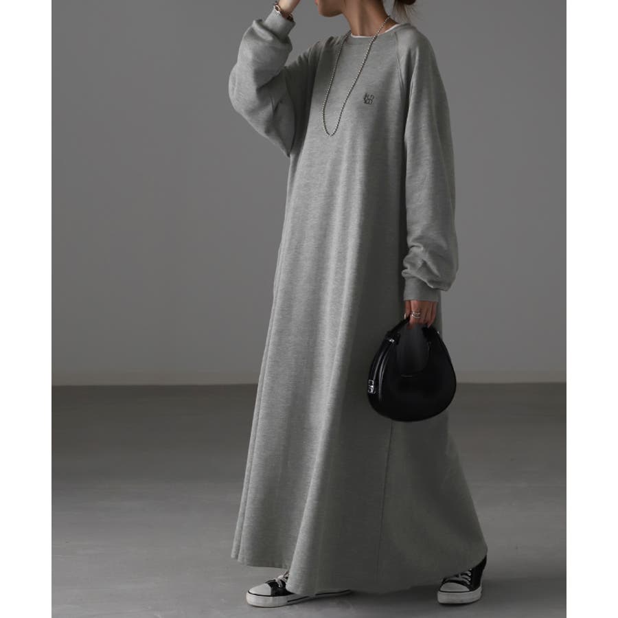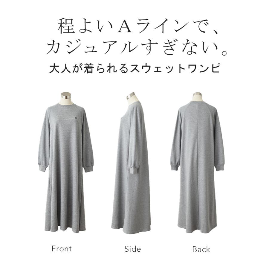 肩のラインを拾いにくいラグランスリーブで仕上げたスウェットワンピース。