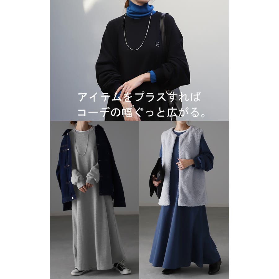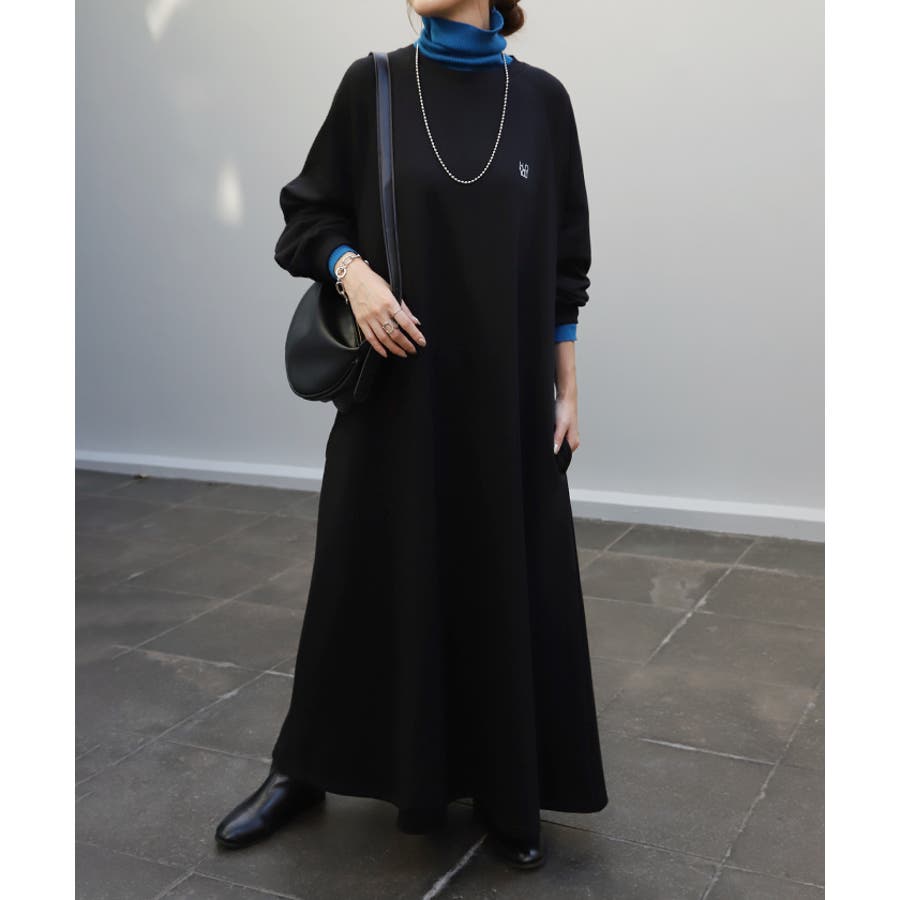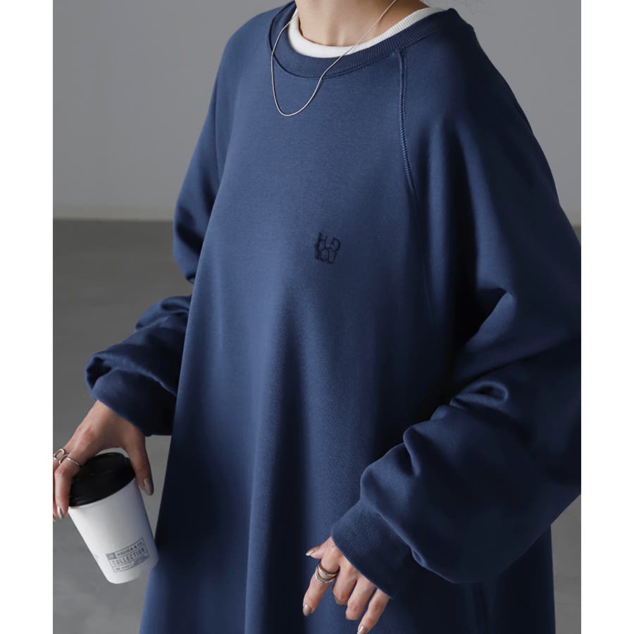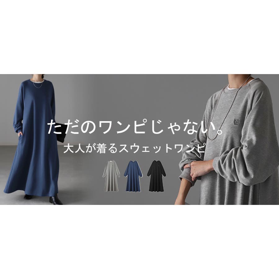 肩のラインを拾いにくいラグランスリーブで仕上げたスウェットワンピース。