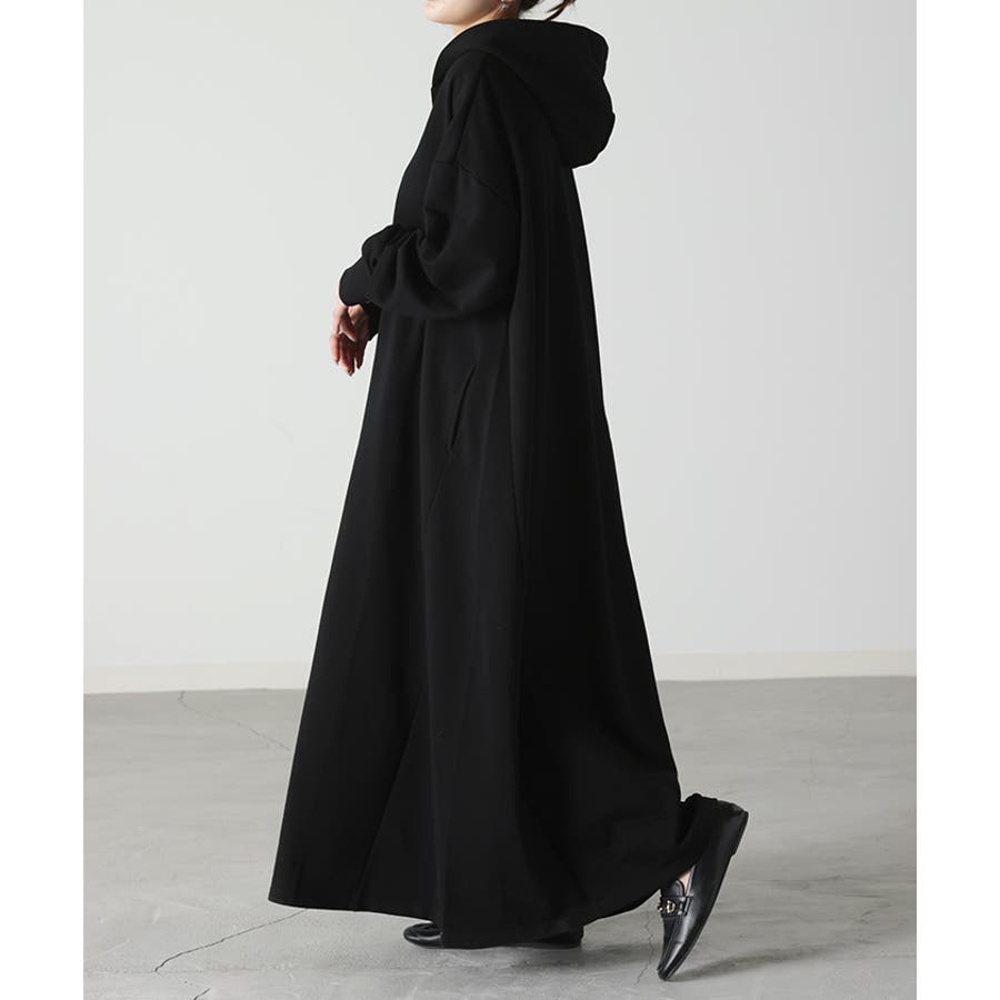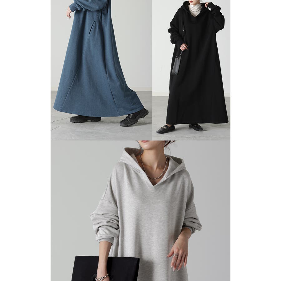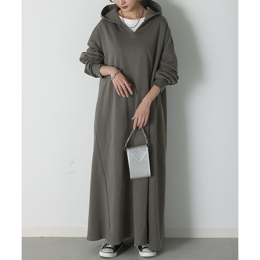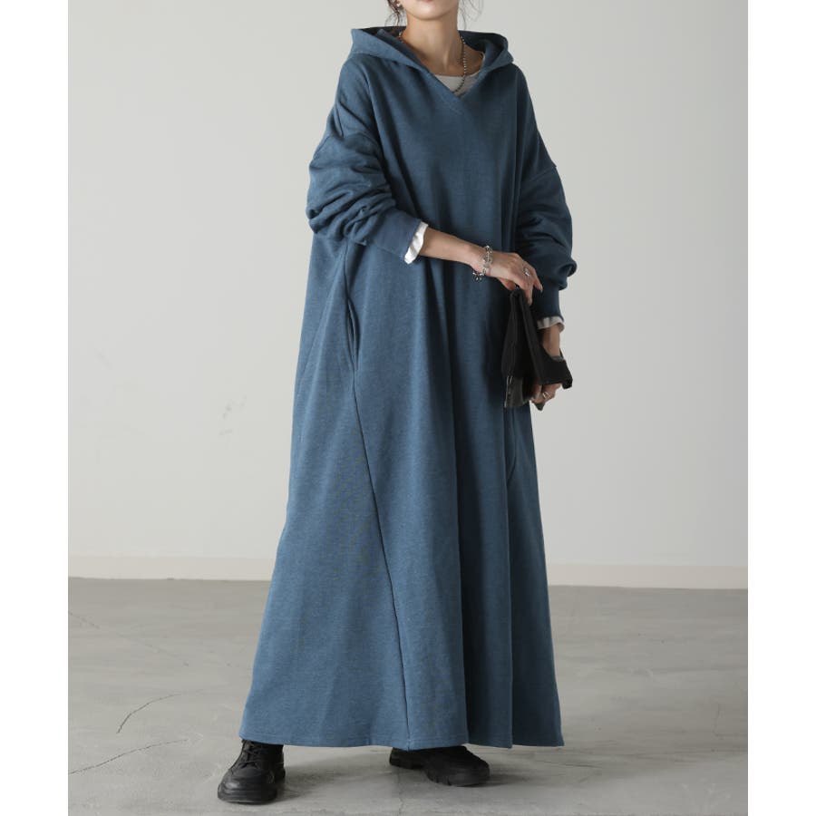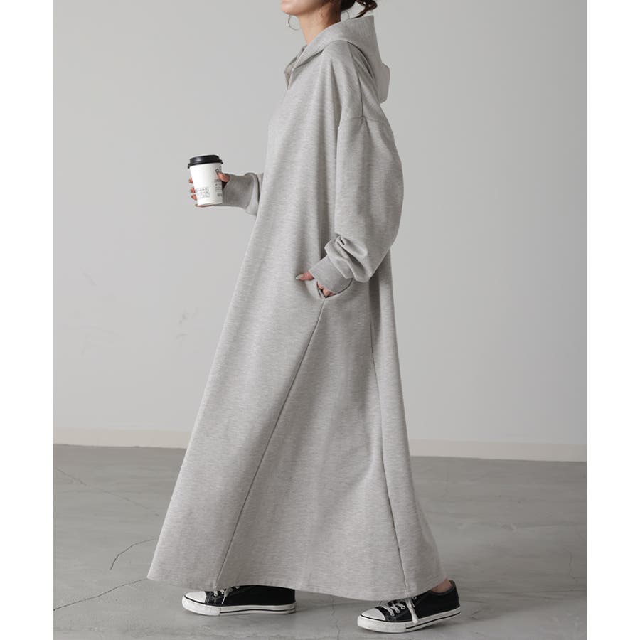 マキシ丈でポケット付きのスウェットパーカーワンピースです。