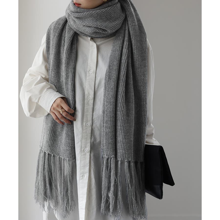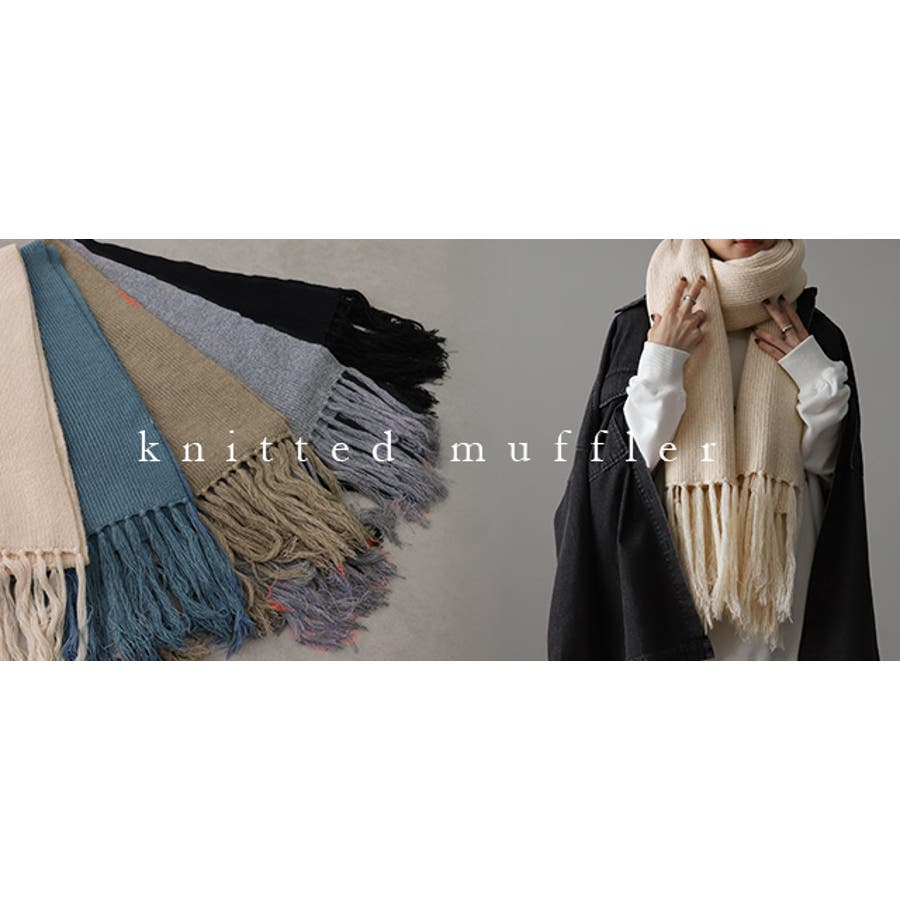 ふんわり柔らかな質感のリブ編みのニットマフラーです。