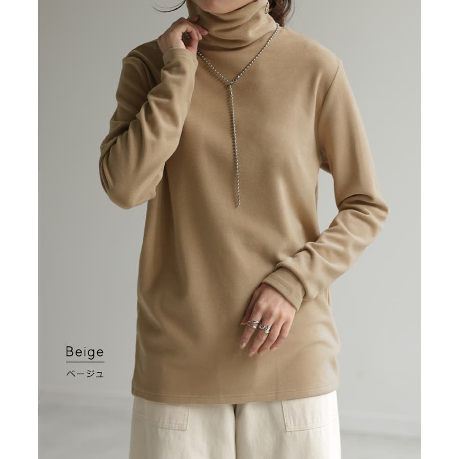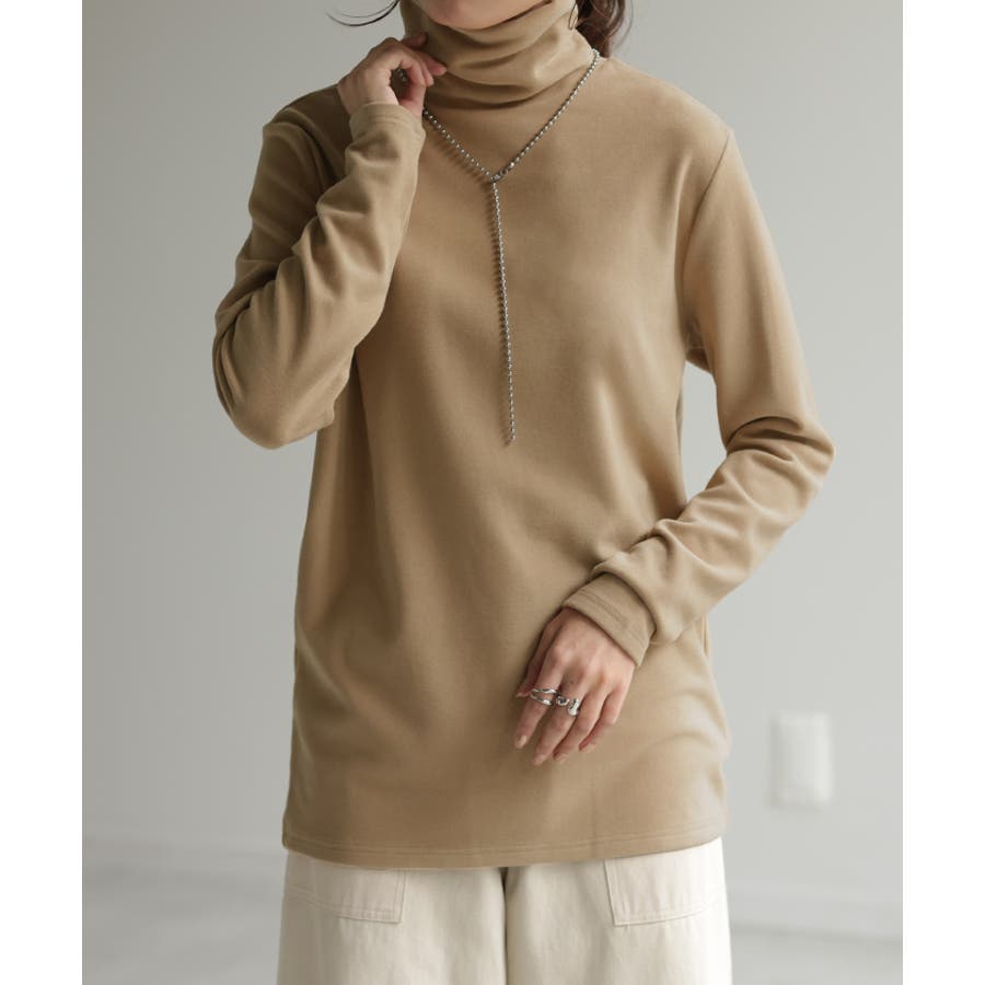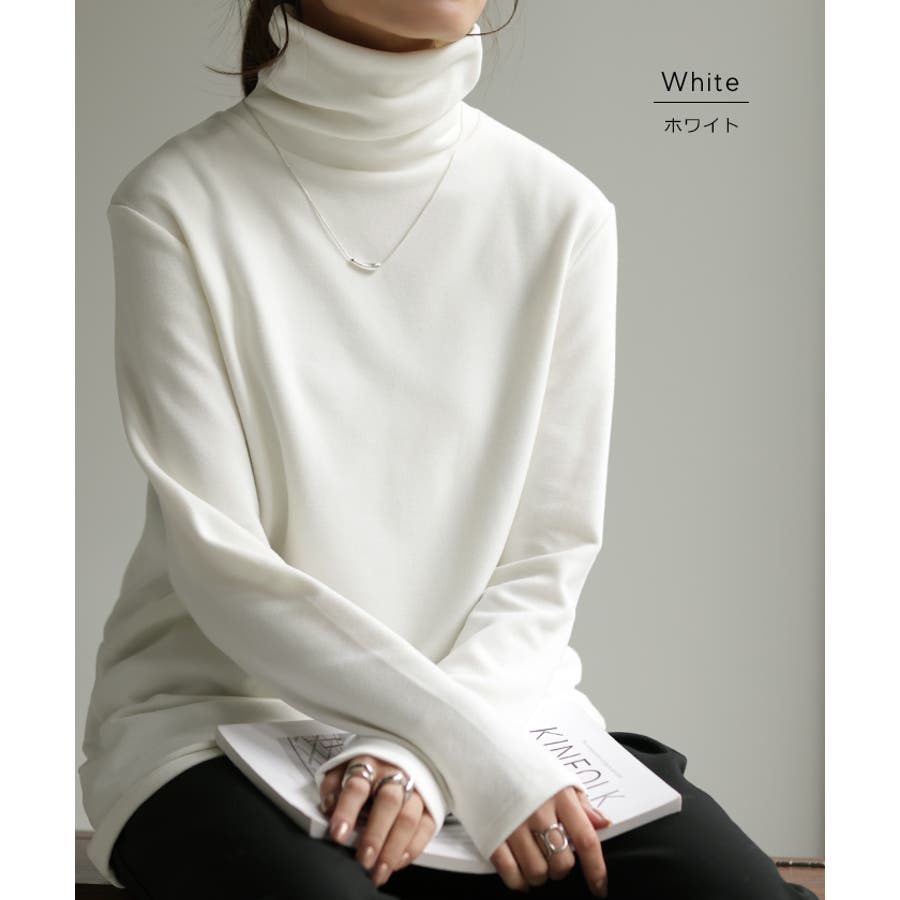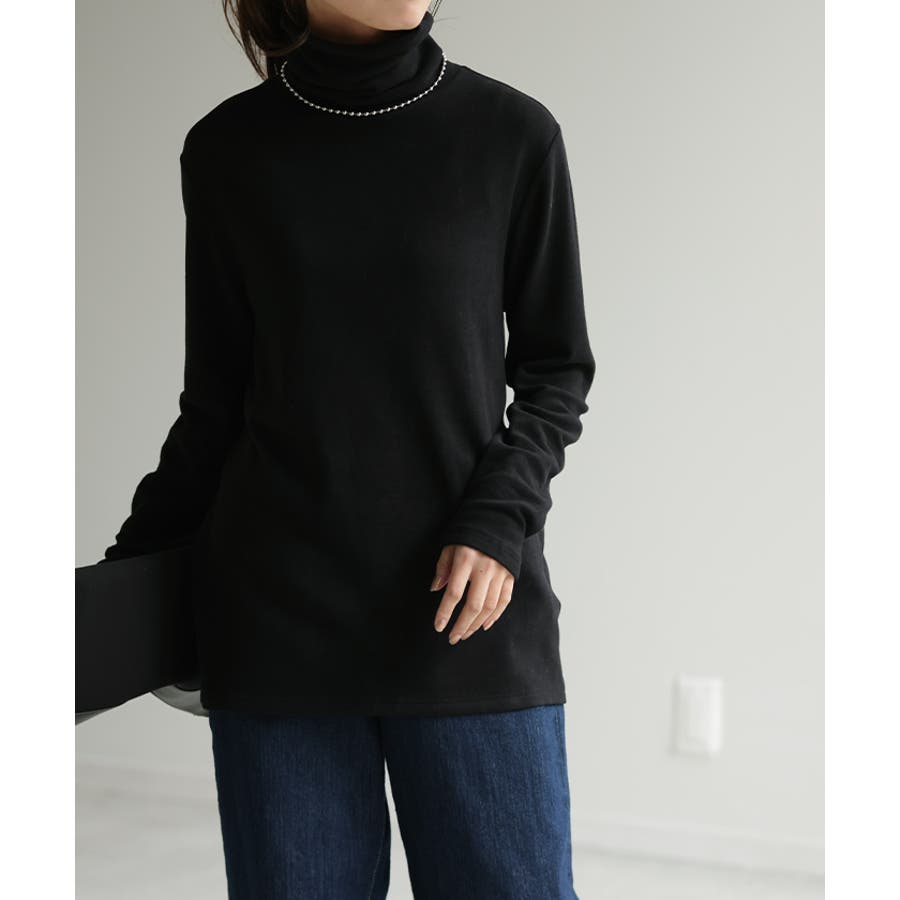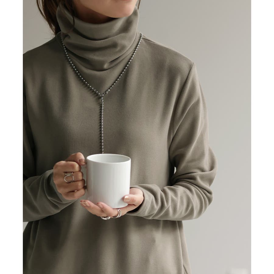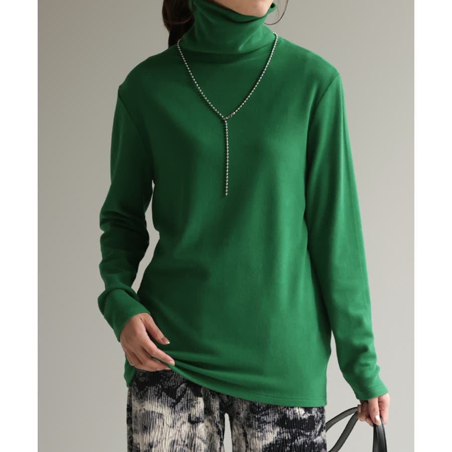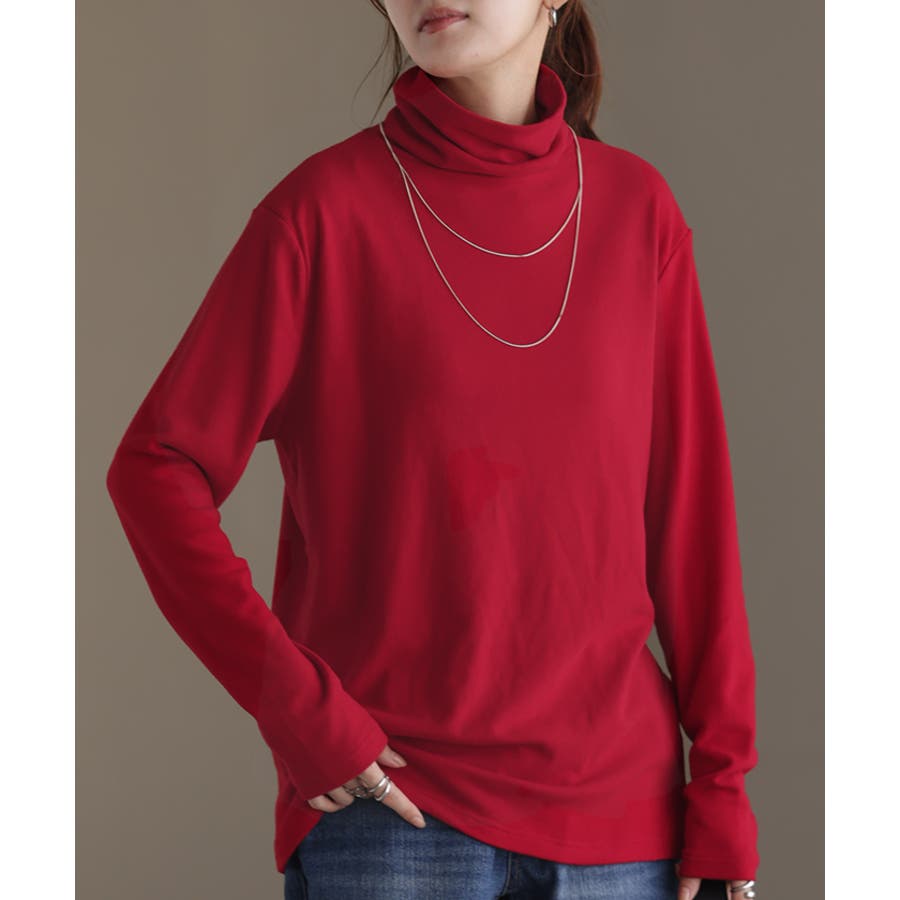インナーとして重宝する首回りが隠せるハイネックデザインのカットソーです。