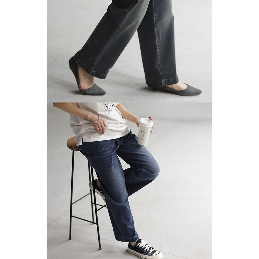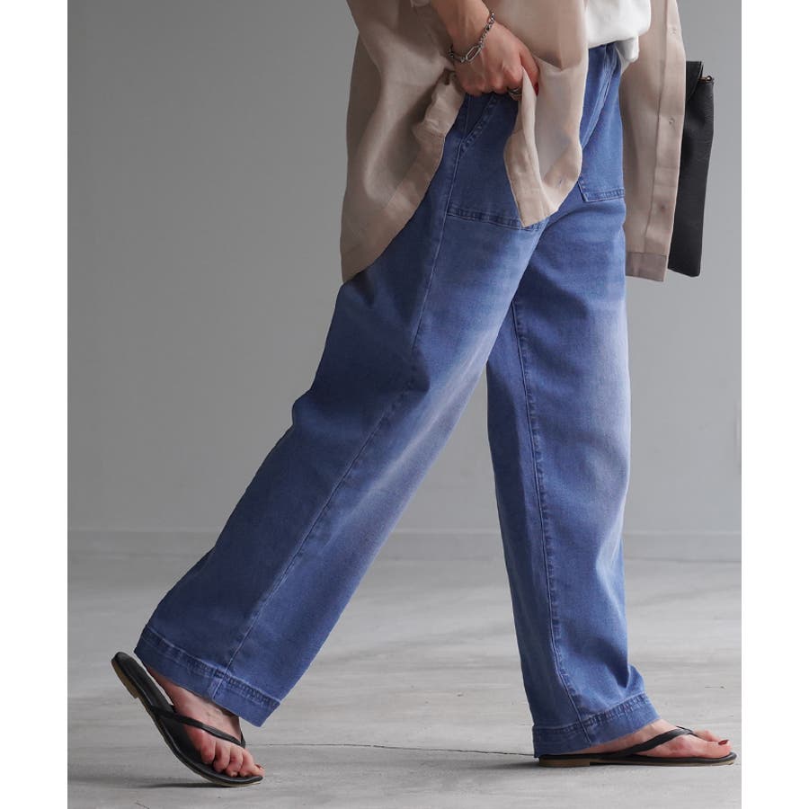 腰からすとんと落ちたスッキリ決まるストレートワイドシルエットです。