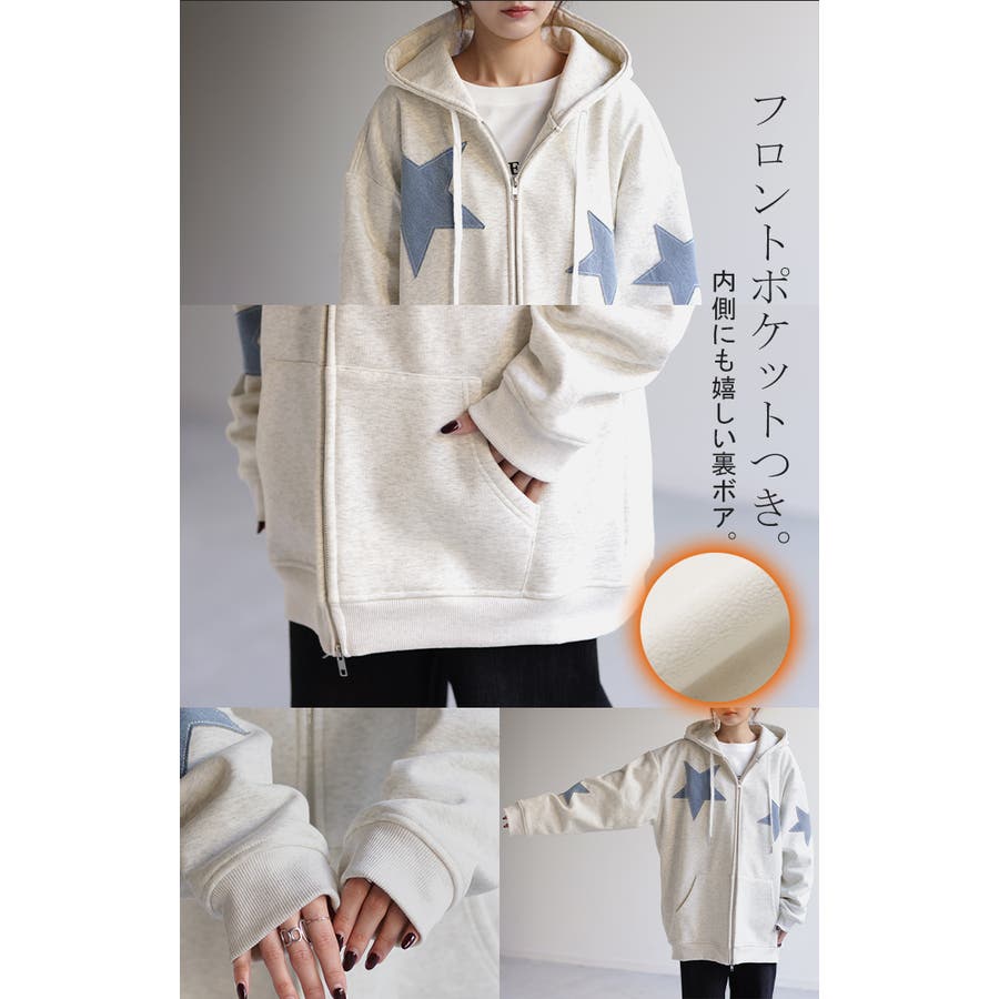 星のパッチワークがこなれた印象のジップアップパーカーです。