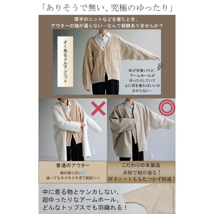 こなれ感のあるドルマンデザインで羽織るだけで美シルエットを作ってくれます。