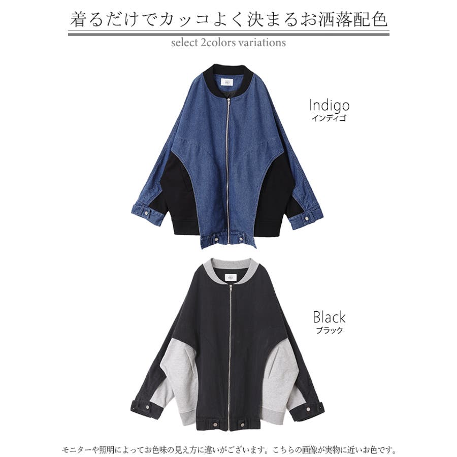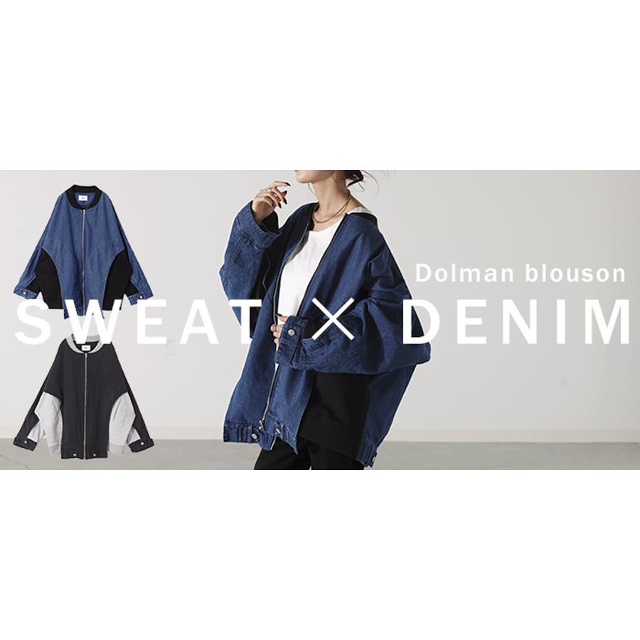 カットソーとの切り替えでドルマンシルエットのこなれ感あるデニムブルゾンです。