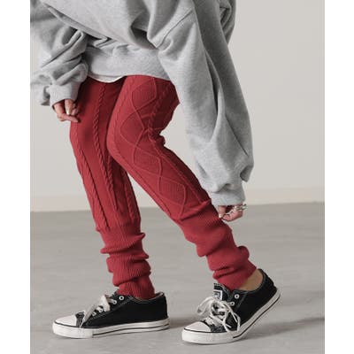 レギンス ケーブル編み ニット