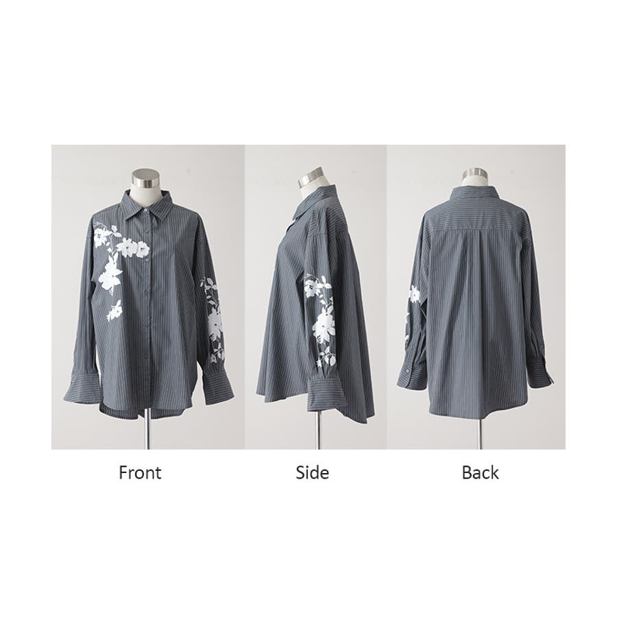 花柄プリントデザインが存在感あるワイドシルエットブラウスです。