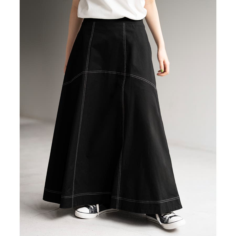 さりげない配色ステッチが素敵なフレアロングスカートです。