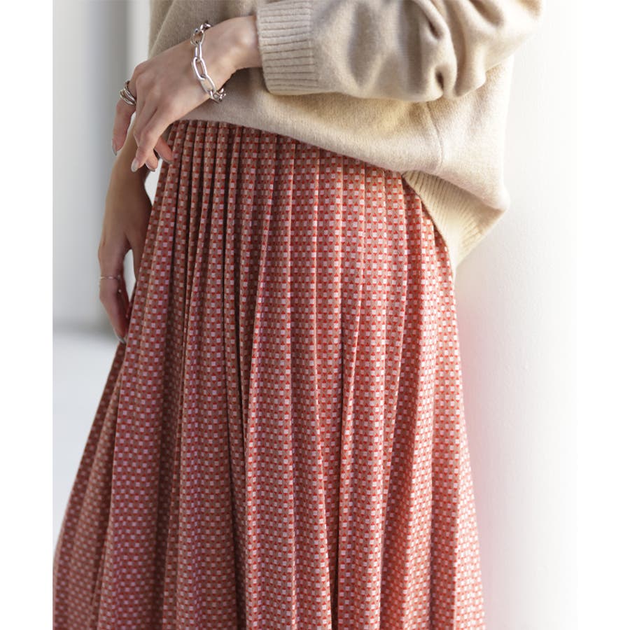 目を惹く幾何学柄でこなれた雰囲気を醸し出すスカートです。