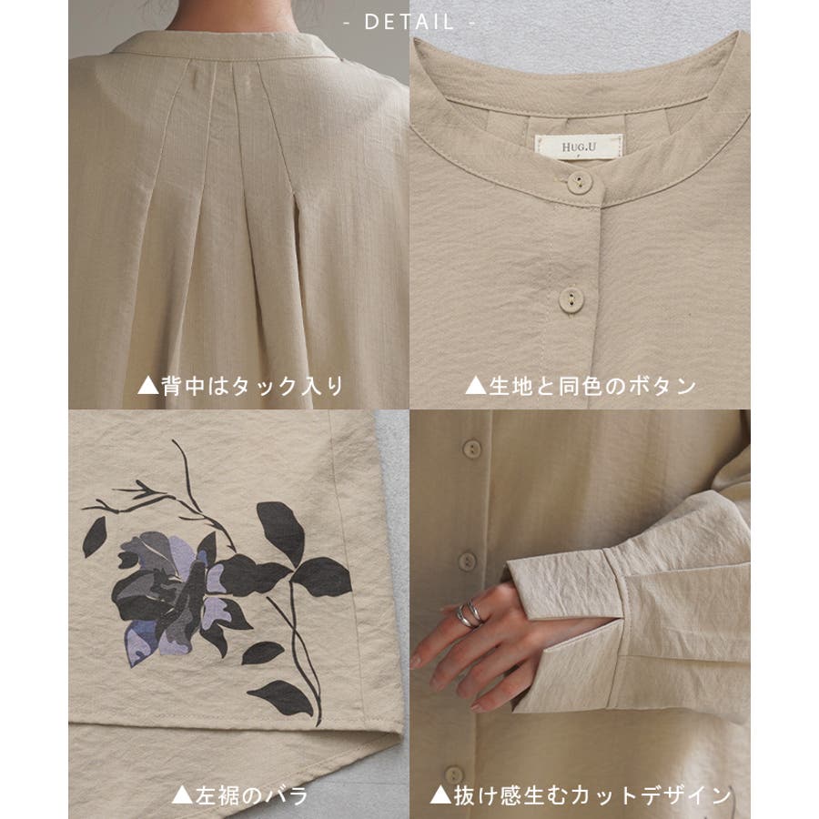 お尻が隠れる 天然素材 風 自然派 自然 肌触り バンドカラー オーバーシルエット オーバーシャツ バンドカラーシャツ ノーカラーシャツ ノーカラーブラウス 白シャツ フラワー 花 花柄 小花柄 小花 大花 大花柄 柄プリント 柄シャツ プリントシャツ 和 和風シャツ 和柄 和柄シャツ ドルマンシャツ ドルマントップス ナチュラル チュニック丈 ギャザーシャツ ギャザー入り ギャザーブラウス 変形シルエット 変形デザイン 変形シャツ アシメ裾 アシメ裾シャツ ヘム ヘムライン 羽織り アウター ビックサイズ ビッグサイズ リネン風 麻風 リネンタッチ ロングスリーブ 長袖シャツ 長袖シアーシャツ シアーシャツ ボタンシャツ 前開きシャツ スリット入り サイドスリット サイドカット フレアシャツ バックフレア バックシャン リネン 風 リネンライク 抜き襟 抜き襟シャツ レイヤードトップス レイヤードシャツ トール丈 トール トールサイズ 高身長 170cm 長め 着痩せ 着回し ミディアム アシンメトリー ミドル丈 前後差 前後差シャツ 切り替え 切り替えシャツ 薄手 薄目 薄め 薄い Aライン Aラインシャツ 個性 個性的 大判 大判シャツ ラウンドシャツ ラウンド ラウンド裾 冷え性対策 冷房対策 冷え性予防 日焼け対策 ホワイト 白 白色 ベージュ サンドベージュ 茶 茶色 ブラック 黒 黒色 レディースファッション 旬 トレンド レイヤード 重ね着 重ね レイヤードコーデ プラスサイズ ビック big ビックシルエット ビッグシルエット オーバー 着痩せ 大き目 大きい 大きめ フリーサイズ フリー S M L LL 2L XL 3L XXL LLL カジュアル ナチュラル ベーシック オフィス オフィスカジュアル テレワーク リモートワーク リモート オンライン飲み会 おうち時間 お家時間 着回し 母の日 プレゼント ギフト 贈り物 クリスマス シンプル 大人 大人カジュアル オトナ 女性 綺麗 綺麗目 きれい キレイ キレイめ キレイメ きれいめ 高見え 上質 上品 20代 30代 40代 50代 おしゃれ お洒落 オシャレ 可愛い かわいい カワイイ カッコいい 格好良い カッコイイ 春 夏 秋 冬 春夏 秋冬 HUG.U HUGU ハグユー はぐゆー