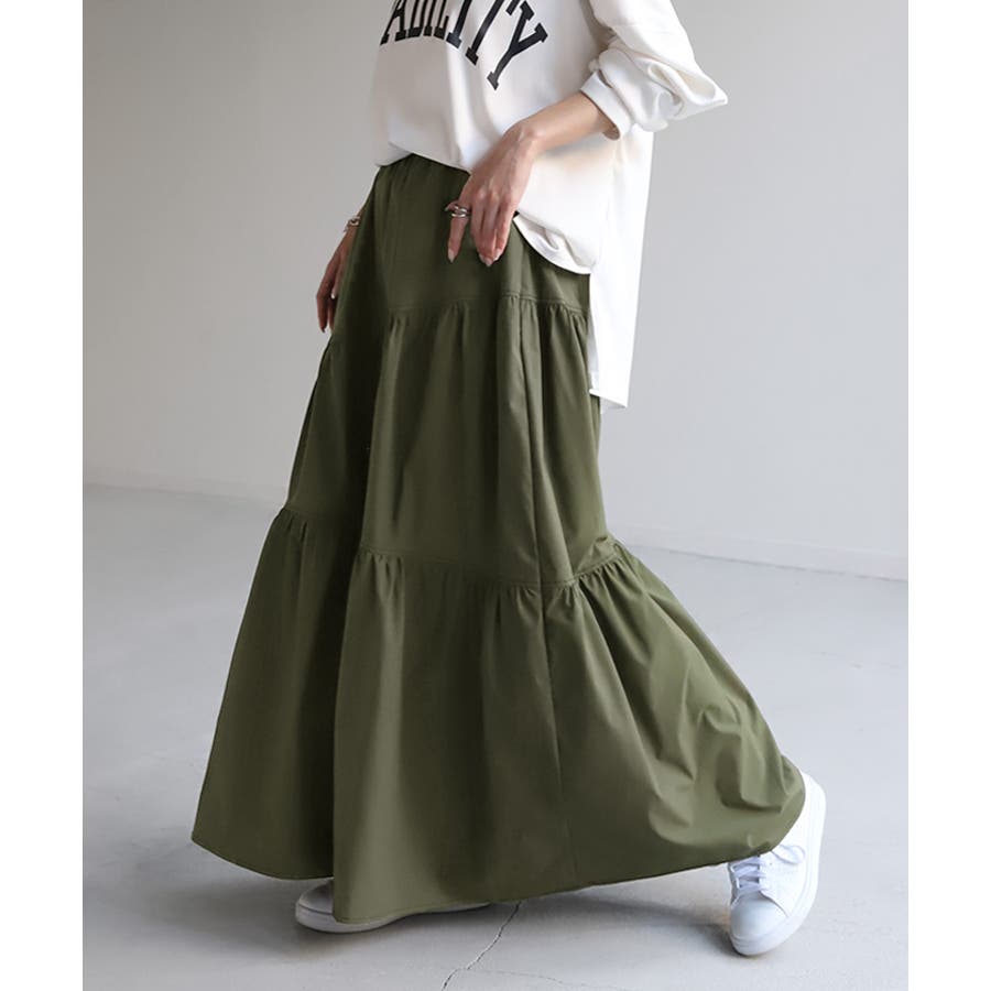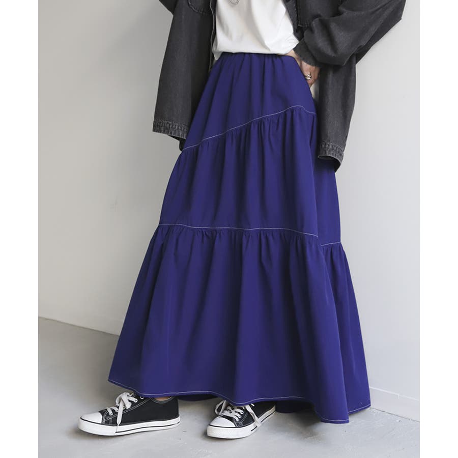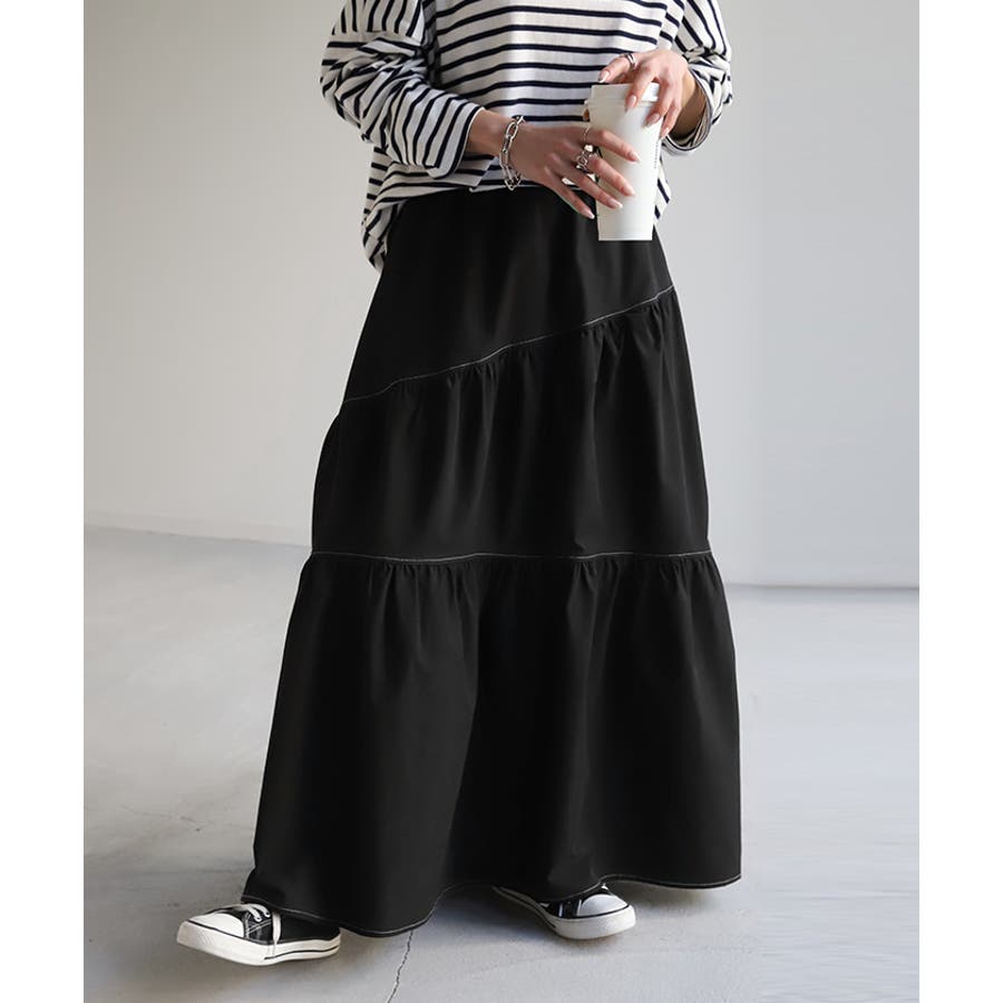 切り替えステッチ&ギャザーが映えるティアードスカートです。
