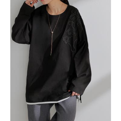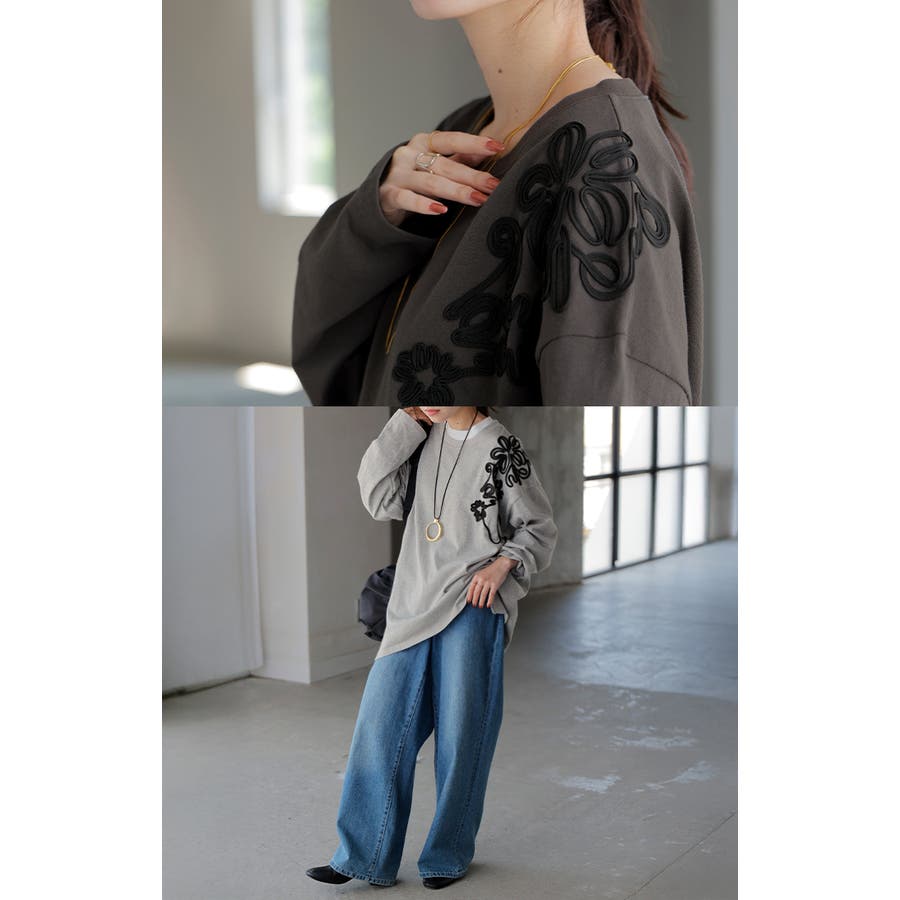 立体感ある配色コード刺繍が施された女性らしいカットソーです。
