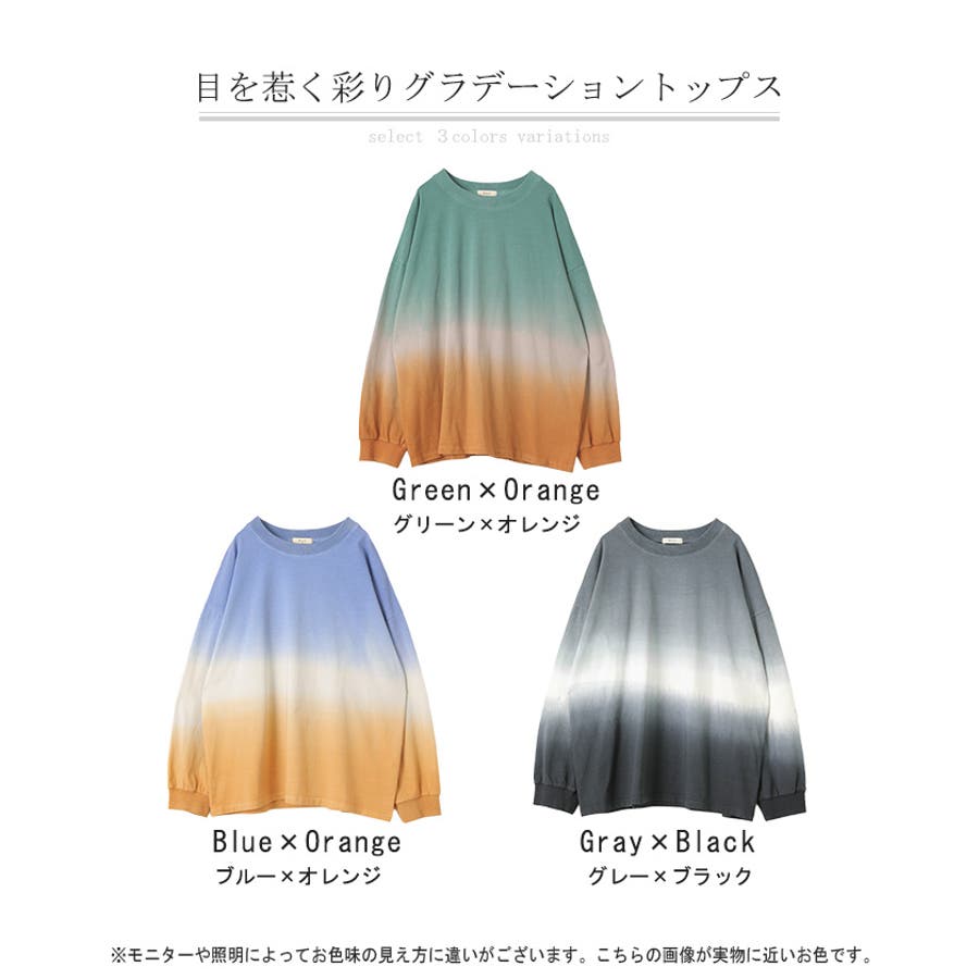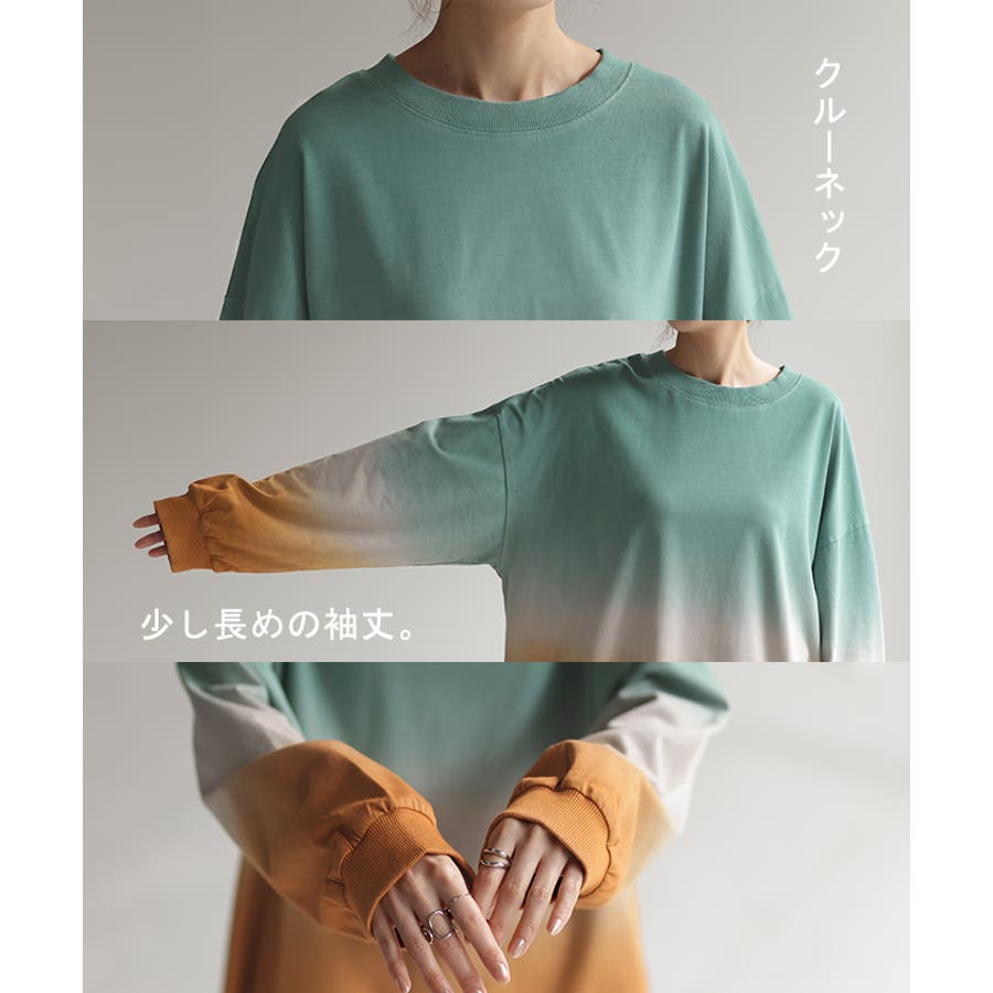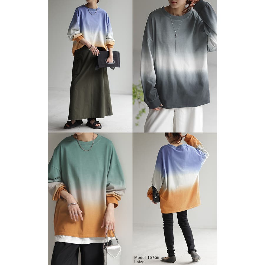ニュアンスカラーの自然なグラデーションが印象的な長袖トップスです。