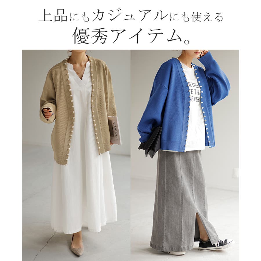 投稿日:2024.05.14カーディガンの素材もしっかりしていて、ちょっとしたお出かけにピッタリでした。パールで華やかさがでて、ノーアクセサリーでも良かった