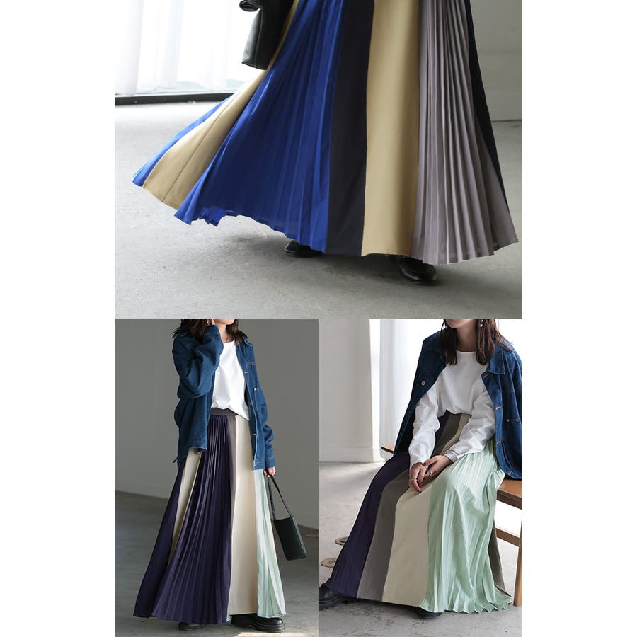 スカート 配色 プリーツ