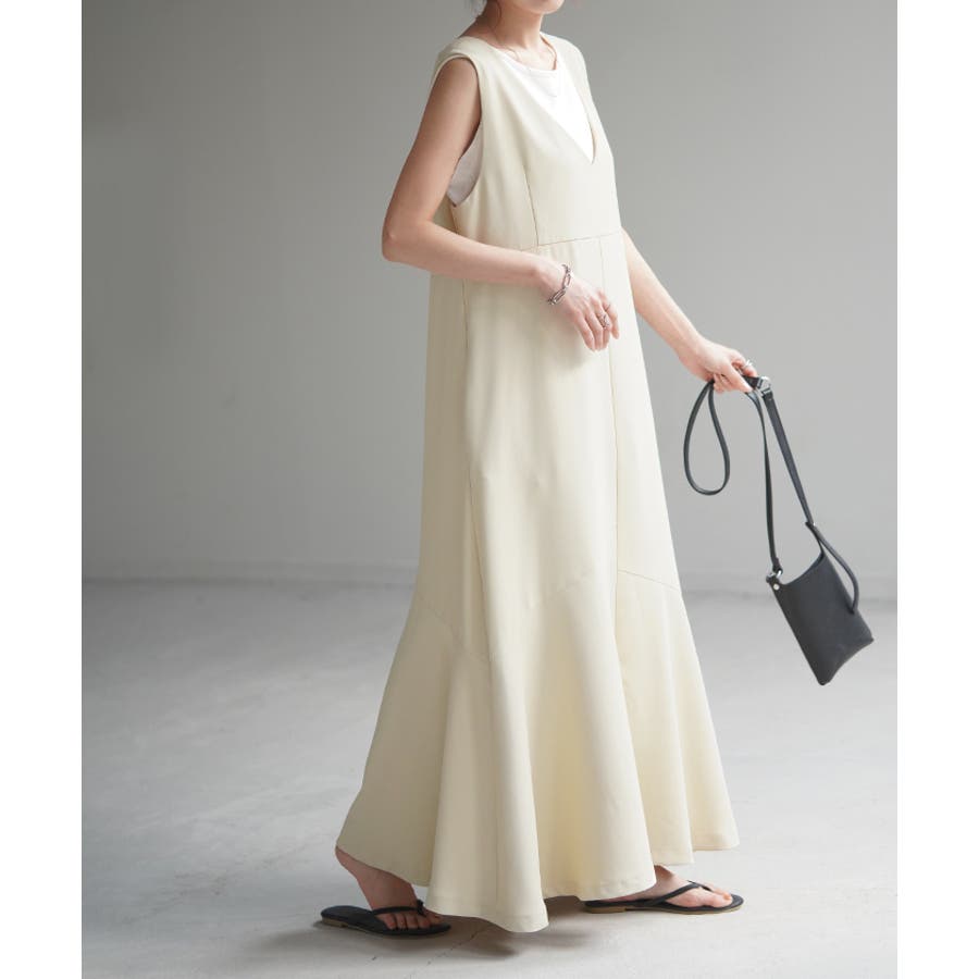 リラックス感がありながら程良く広がるマーメイドラインのノースリーブワンピースです。