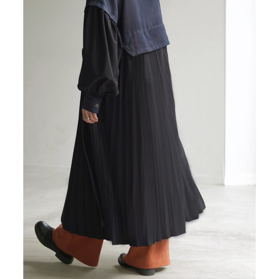 カジュアルな中に歩くたび揺れるプリーツが優雅な装いをプラスします。