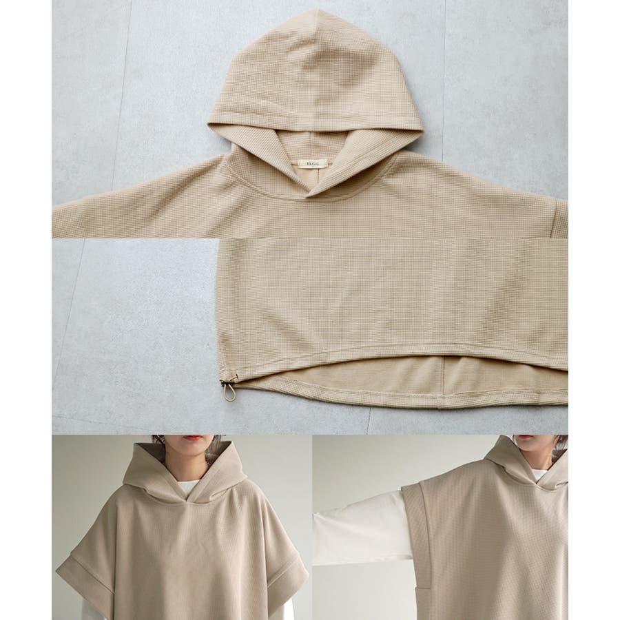 さっと着るだけで大人カジュアルな印象になるワッフル素材のフードパーカーです。