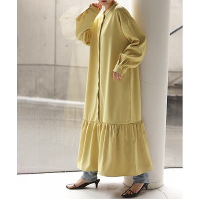 裾にフリルを施した、マーメイドシルエットのゆったりワンピースです。